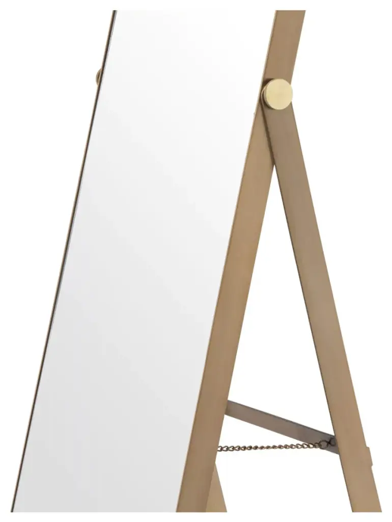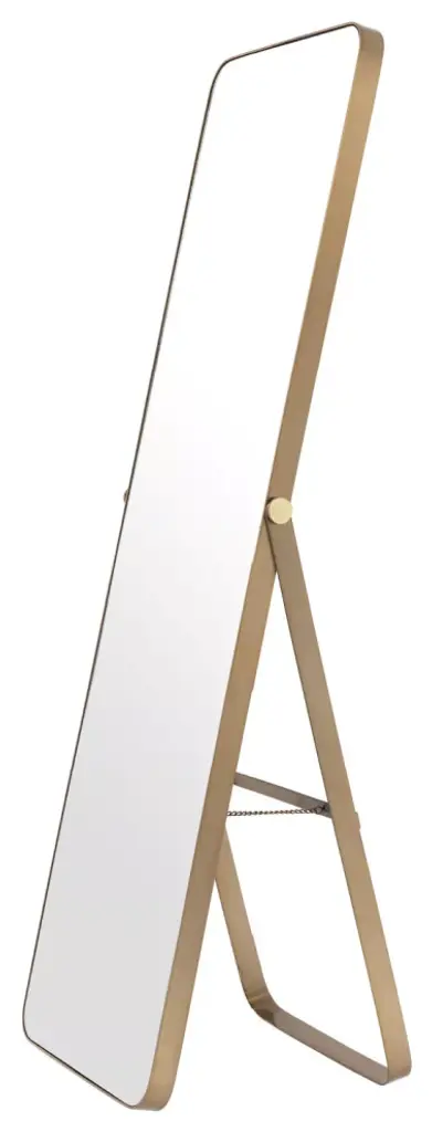 Providing a mid century modern take on your space, this Brass Full Length Mirror is simple and chic. The brushed brass finish on the frame is clean and minimalistic. Perfect for your bedroom or closet space, stick it anywhere you need for practical use and a modern look.W21 x D18 x H62 in | Weight 46lbsStainless SteelBrushed Brass finish