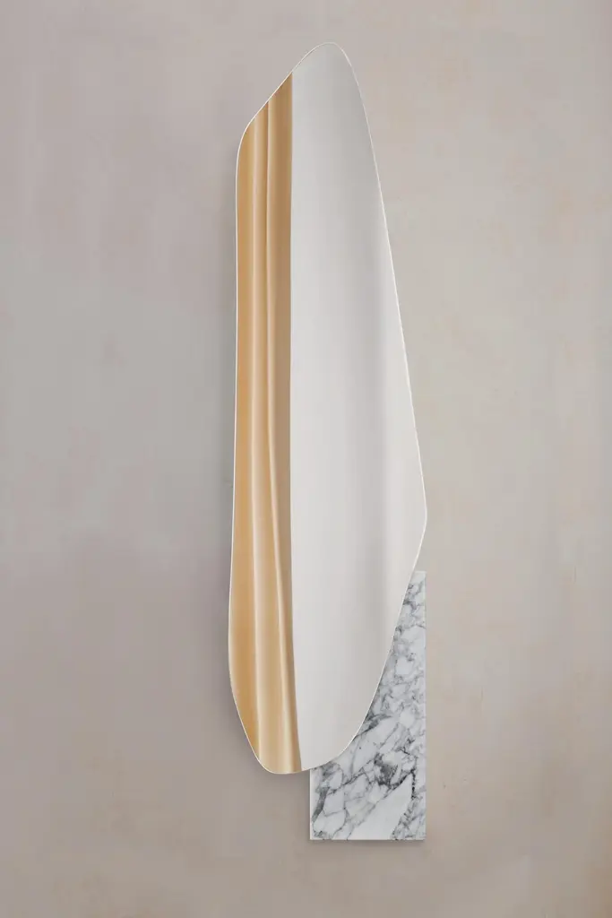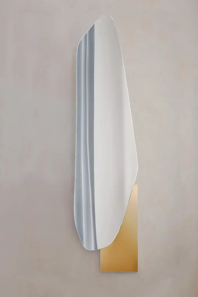 Lake Wall Mirror 2 by NOOMDimensions: W 44 x D 3.5 x H 155 cm Materials: Mirror Optiwhite, base: Brushed brass. "Lakes" is a nature-inspired collection of sculptural mirrors designed by French designers Maryna Dague and Nathan Baraness. The collection takes its name from the shorelines of lakes and aerial views of their curved shapes, represented in the design. The designers have emphasized the contrast between the fluid shapes of the glass and the straight lines of the mirrors' supports, made of slabs of wood, brass, oxidized copper, marble, onyx, and other attractive materials. The collection features five designs, including a floor mirror.About, NOOM is a leading design brand from Ukraine. Working at the intersection of art and craftsmanship, driven by a curiosity for testing new materials, finishes, and techniques, NOOM produces eye-catching furniture, lighting, mirrors and décor for private and commercial interiors, including cutting-edge collectable design pieces. Balancing between expression and function, NOOM is a place where design meets art. The company was founded in 2017 by industrial designer Kateryna Sokolova, with designer, and entrepreneur Arkadii Vartanov. Arkadii and Kateryna teamed up to bring together the very best of design, materials, and craftsmanship. Combining traditional and modern manufacturing technologies, NOOM aims to design functional and striking products that are "built to last". "Our objects lie between design, art, and craftsmanship," said the designers. "Managing the manufacturing of our creations, we oversee the entire production process and pay exceptional attention to every detail in each piece”.