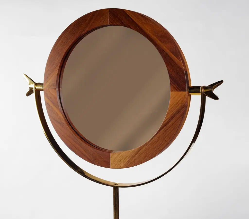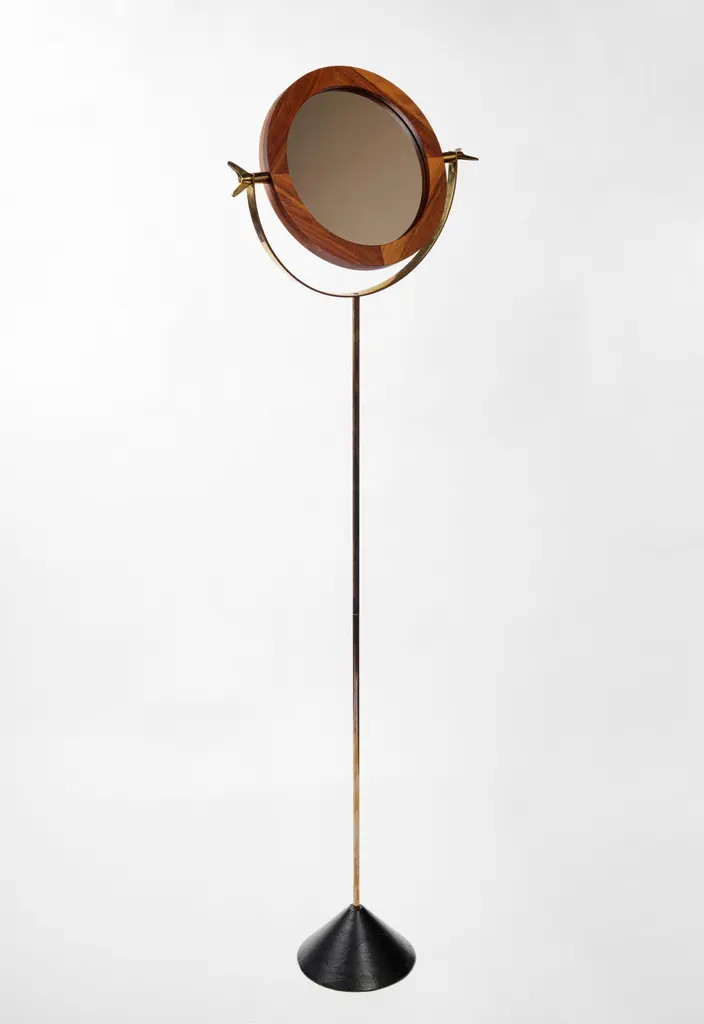 Floor mirror #4959 by Carl Auböck in brass and walnut.