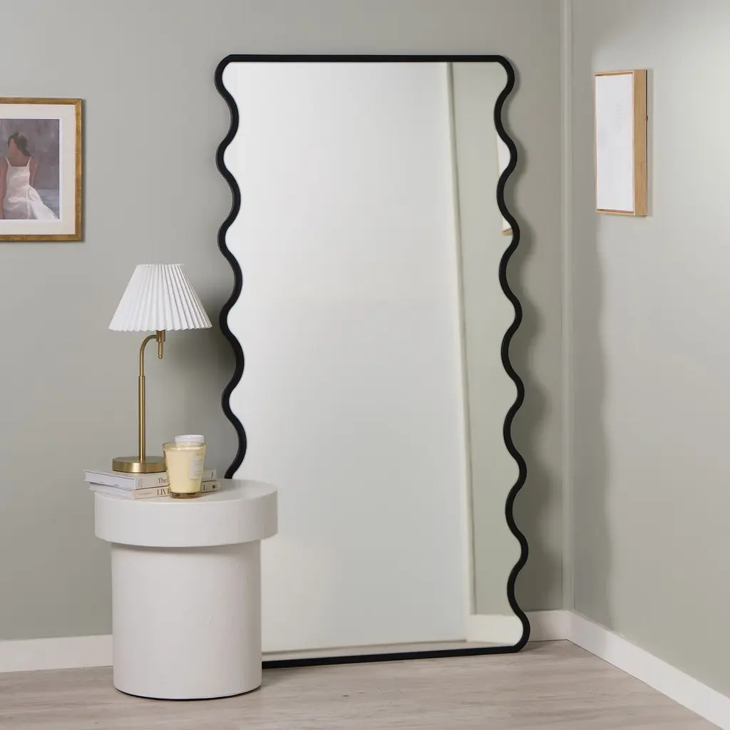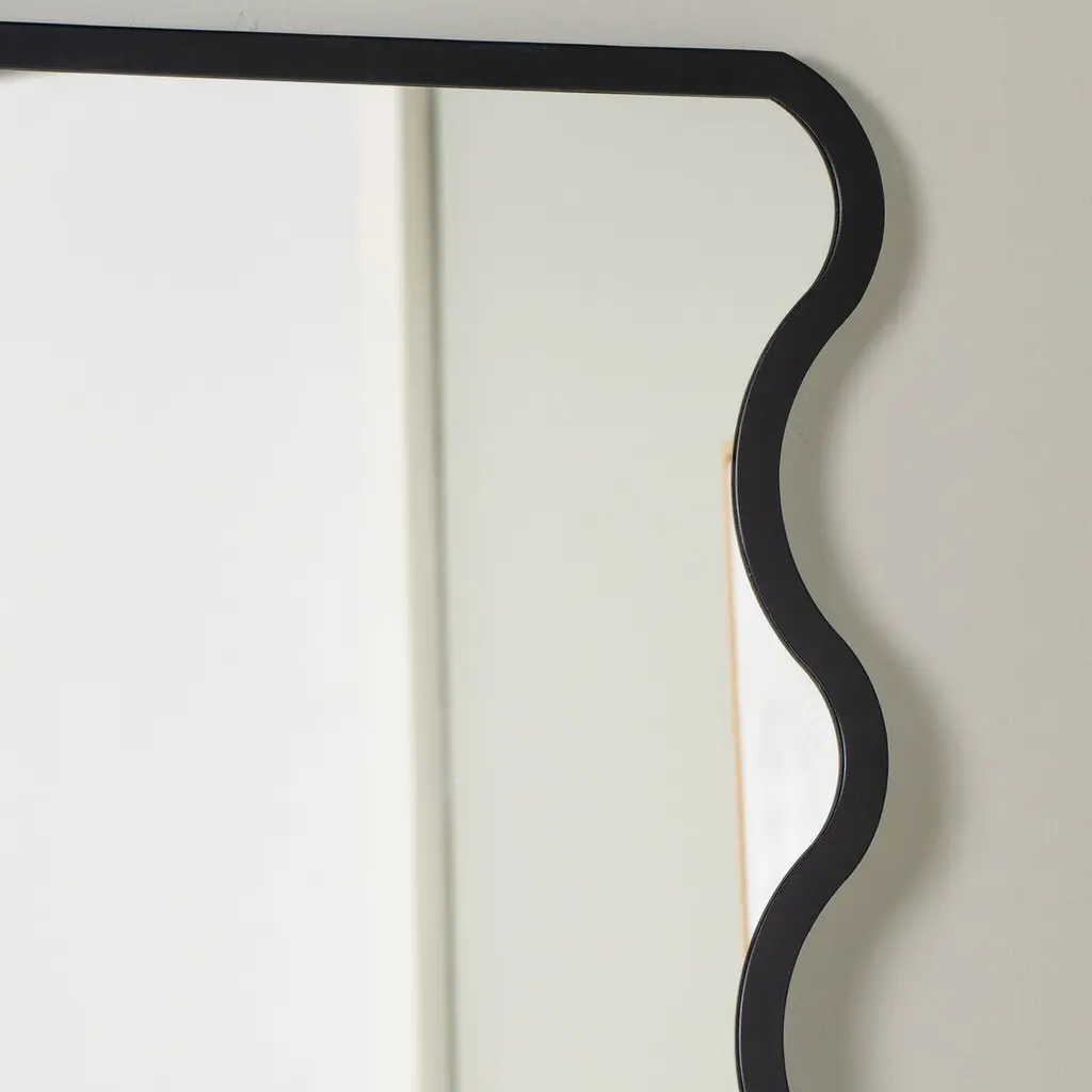 The beautiful Carmin Wavy Floor Mirror features intricate design details, paired with a hand-crafted frame. This piece is sure to add a statement to a space of any style.