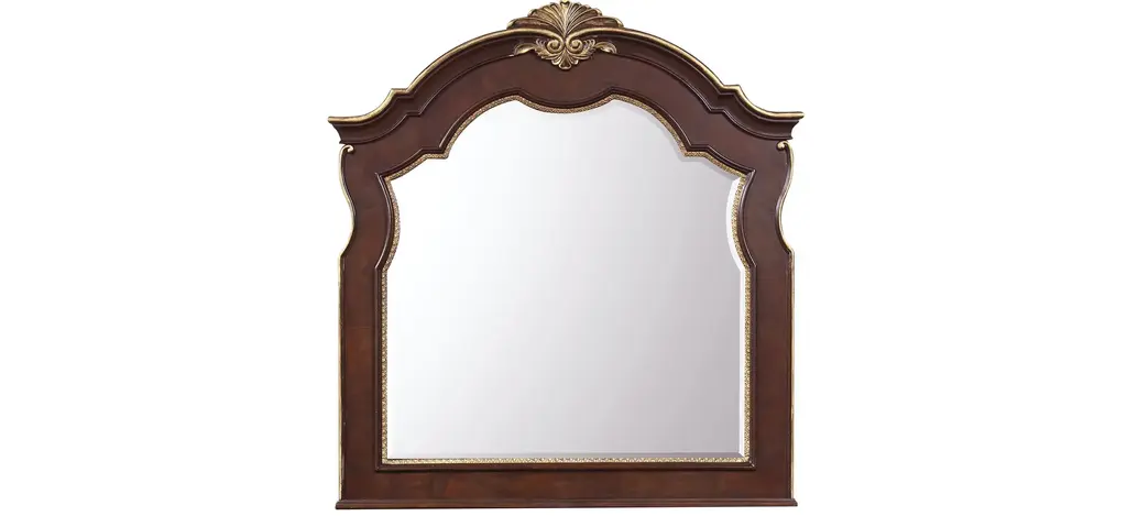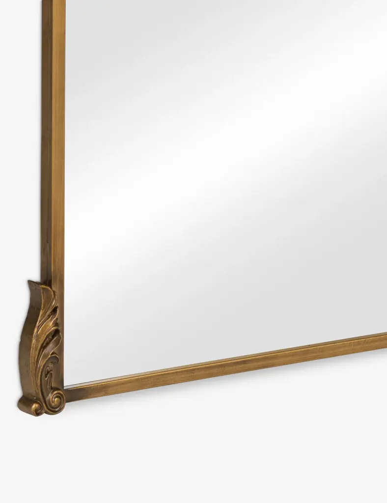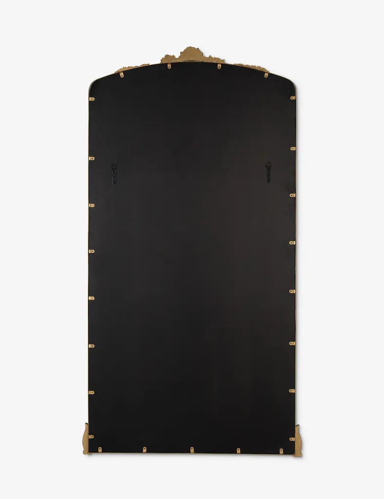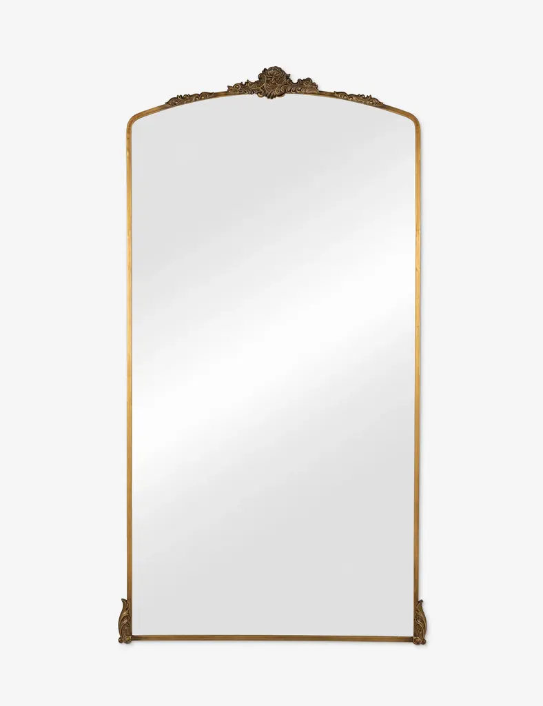 Looking for some glamour in your edit? This ornate floor mirror brings a polished statement to any room. The mirror's arched frame is embellished with scrolling at the top and corners, setting off a traditional look with a touch of opulence.