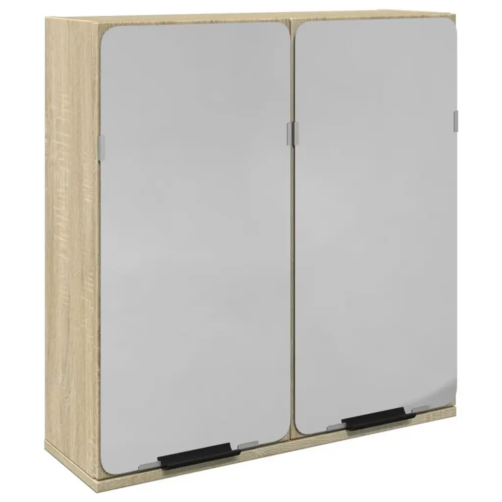 Clihome Modern 2 Doors Wall-mounted Bathroom Mirror Cabinet Engineered Wood Medium Mirror, Brown