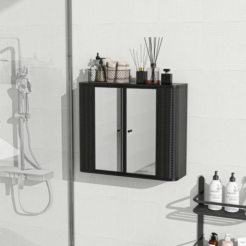 Maximize your bathroom¡¯s functionality with this sleek wall-mounted cabinet featuring dual mirrored doors for convenient grooming and hidden storage. Its space-saving design fits perfectly above sinks or toilets, freeing up floor space. Crafted from durable steel with a waterproof powder coating, it resists rust and wear in humid environments. Smooth hinges and a secure mounting system ensure stability, while easy-to-clean surfaces keep your space fresh and tidy.