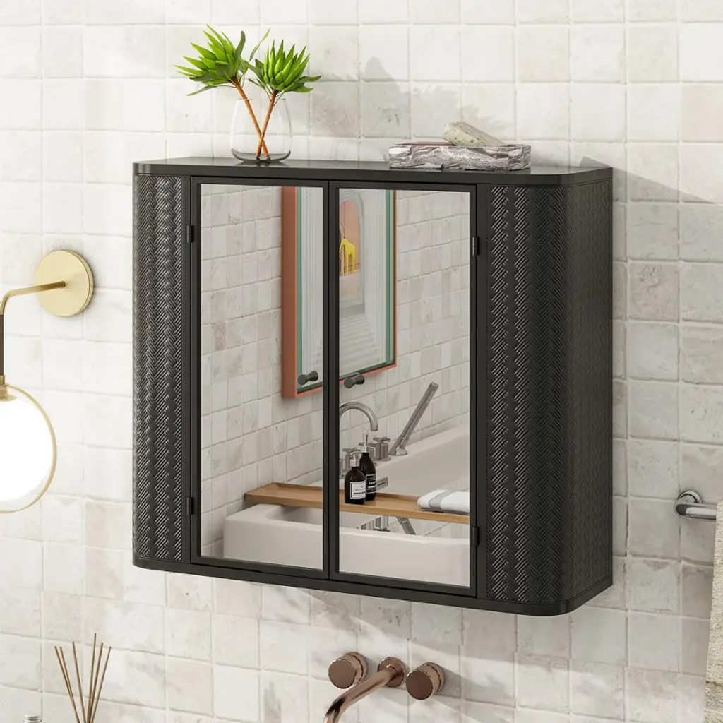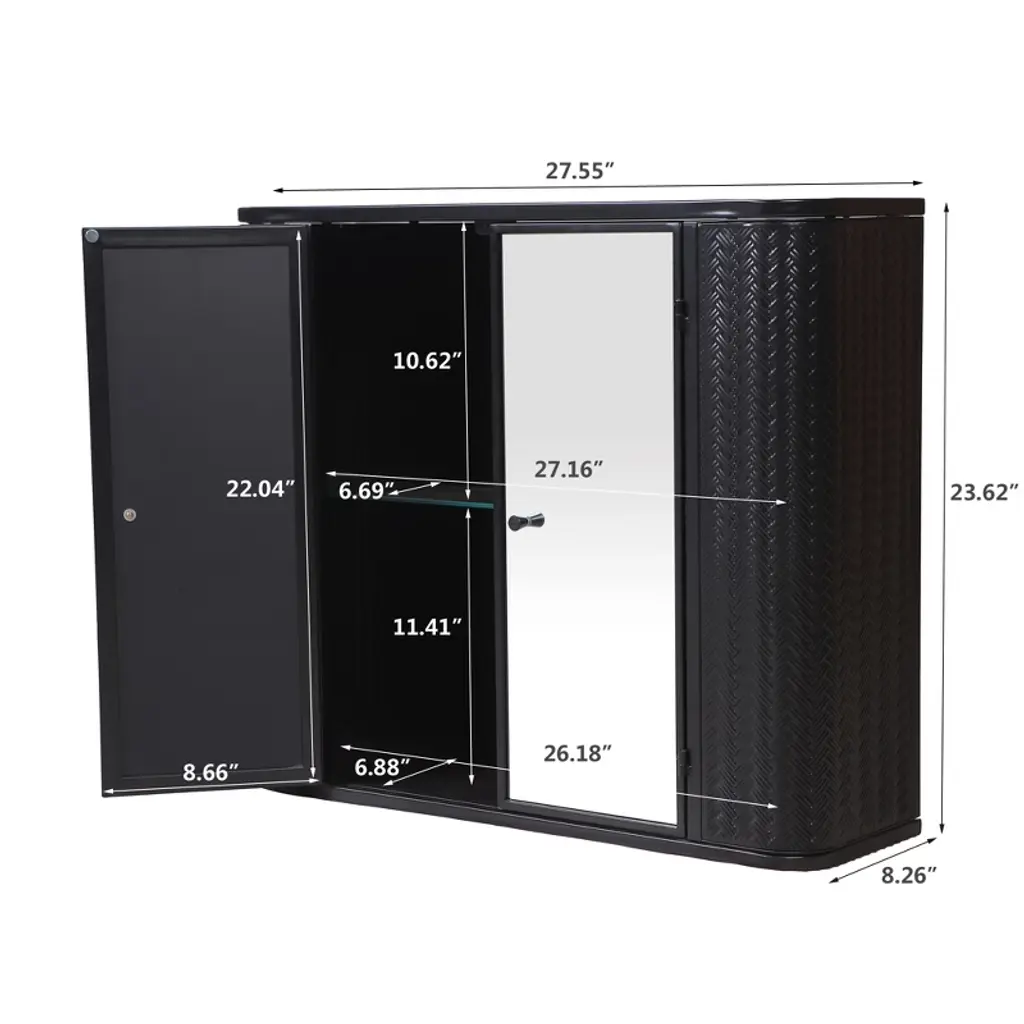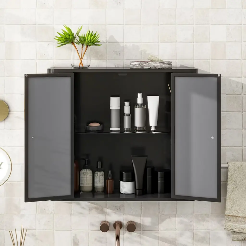 Maximize your bathroom¡¯s functionality with this sleek wall-mounted cabinet featuring dual mirrored doors for convenient grooming and hidden storage. Its space-saving design fits perfectly above sinks or toilets, freeing up floor space. Crafted from durable steel with a waterproof powder coating, it resists rust and wear in humid environments. Smooth hinges and a secure mounting system ensure stability, while easy-to-clean surfaces keep your space fresh and tidy.