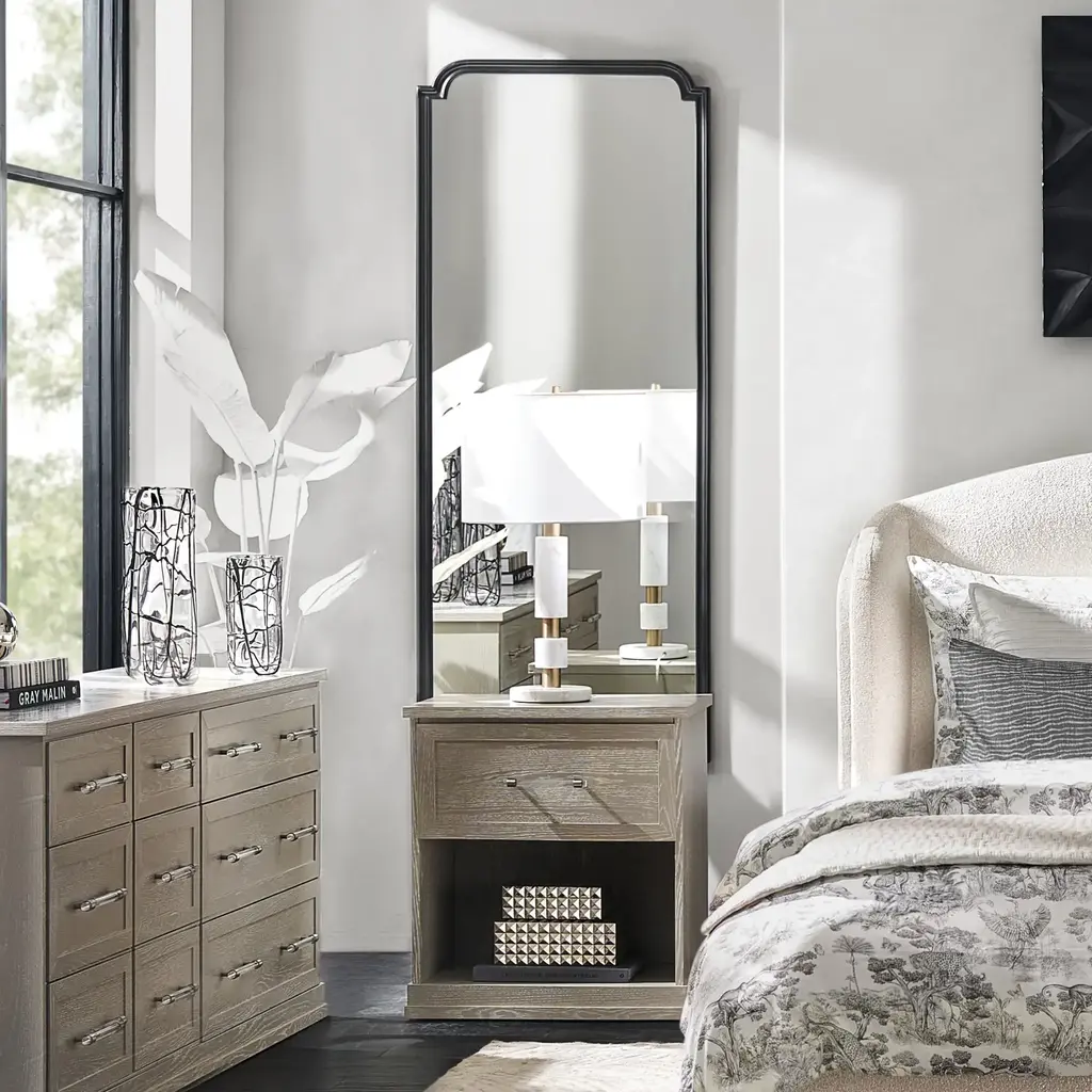 Standing tall at 72 inches, the Clyde Floor Mirror combines sleek black framing with understated sophistication. Whether adding grandeur to an entryway or practicality to a bedroom, it’s a versatile piece that commands attention.