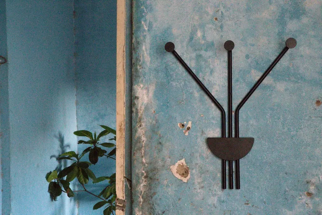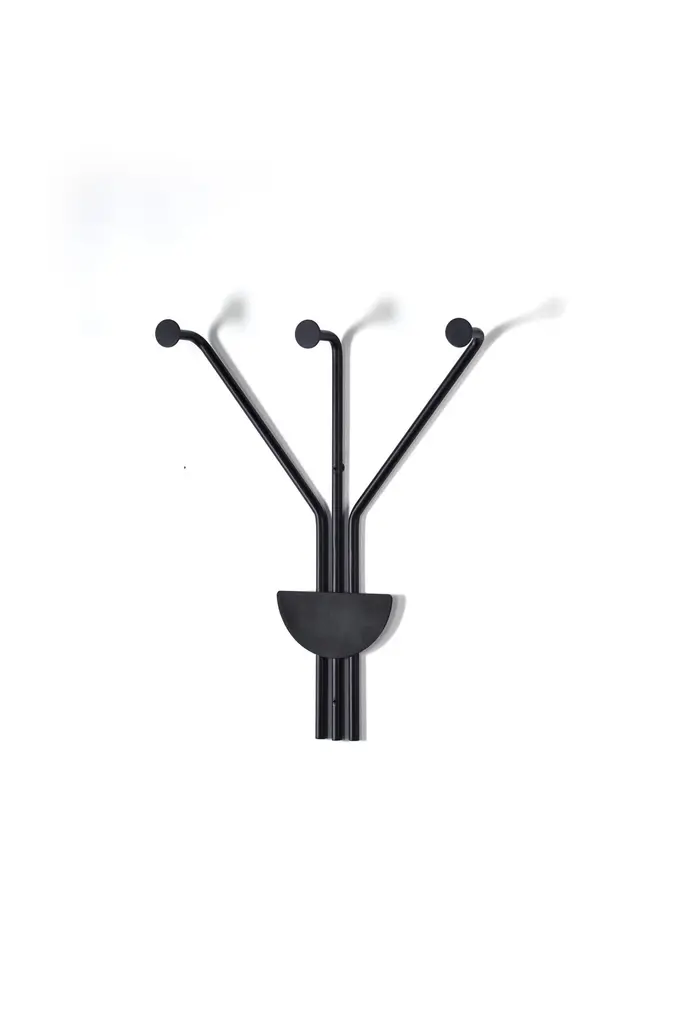 The rack is part of the Dureza collection. Carbon steel reigns as raw material, guiding both simple and rigorous forms, and the graphic language of this new series. The solid and geometric character of the metal plates dialogues with the lightness of the spaced construction of the tubes, structured as a floor lamp, coffee table, support table, rack and mirror.