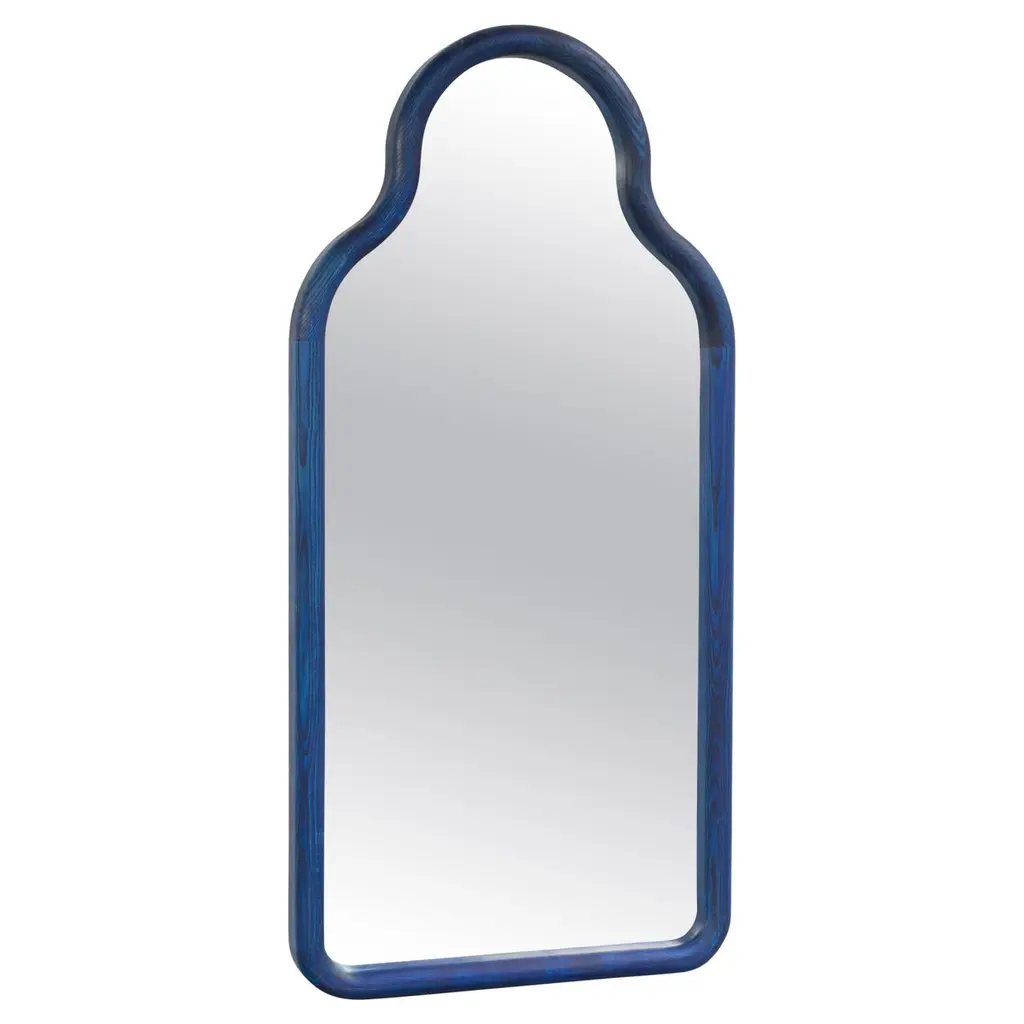TRN M Floor mirrorSigned by Pani JurekDimensions: H110 x 51.5 x 5Materials: Solid ashwood, hand stainedColors: red, blue, green, natural_________________________________Pani Jurek is a Polish design studio founded by artist and designer Magdalena Jurek. Pani Jurek designs lighting fixtures, tables, mirrors and vases. The TRN collection, comprising tables, lighting and mirrors, is a tribute to the painter Jan Tarasin. Jan Tarasin was interested in the world of objects. He began with a realistic record of objects that he simplified and reduced until a system of abstract signs was formed. In her latest collection, Pani Jurek reverses this process, turning ideograms into things again. Her three dimensional objects have a simple calligraphic form so they can play and talk together as if they were letters from a non-existent alphabet.