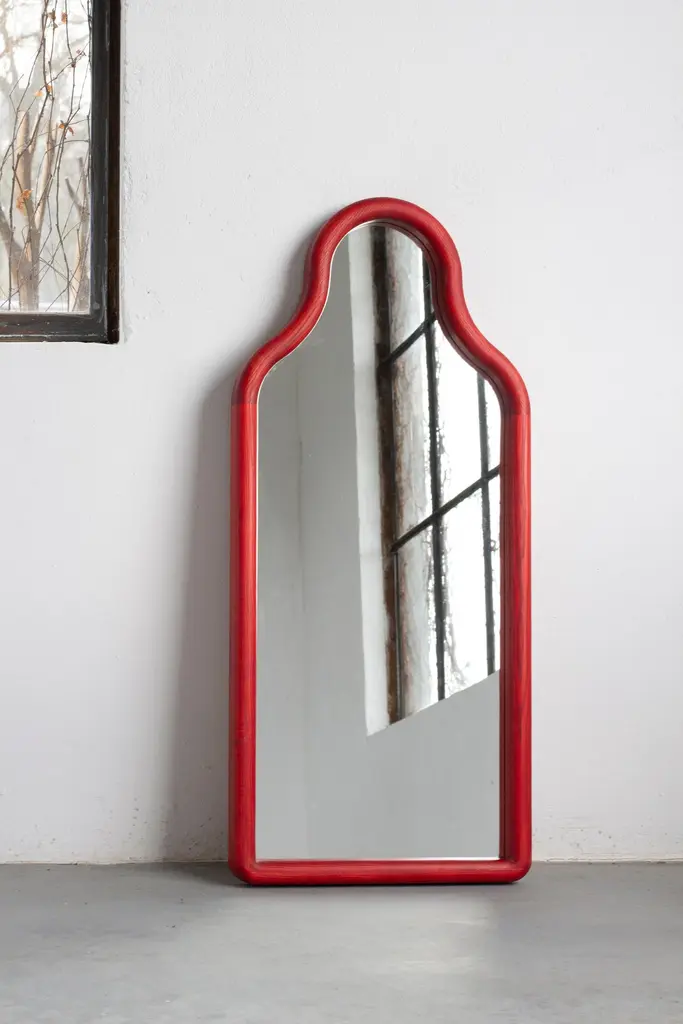 Contemporary Floor Mirror 'Trn M' By Pani Jurek, Ash Wood 'Red'