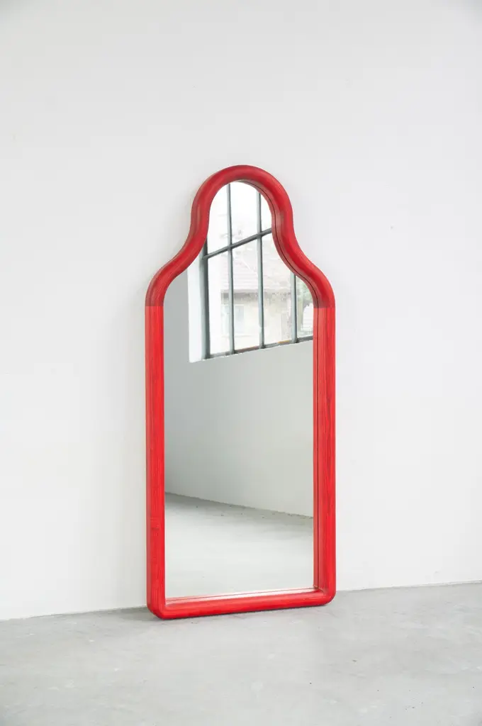 TRN M Floor mirrorSigned by Pani JurekDimensions: H110 x 51,5 x 5Materials: Solid ash wood, hand stainedColors: red, blue, green, natural_________________________________Pani Jurek is a Polish design studio founded by artist and designer Magdalena Jurek. Pani Jurek designs lighting fixtures, tables, mirrors and vases. The TRN collection, comprising tables, lighting and mirrors, is a tribute to the painter Jan Tarasin. Jan Tarasin was interested in the world of objects. He began with a realistic record of objects that he simplified and reduced until a system of abstract signs was formed. In her latest collection, Pani Jurek reverses this process, turning ideograms into things again. Her three dimensional objects have a simple calligraphic form so they can play and talk together as if they were letters from a non-existent alphabet.