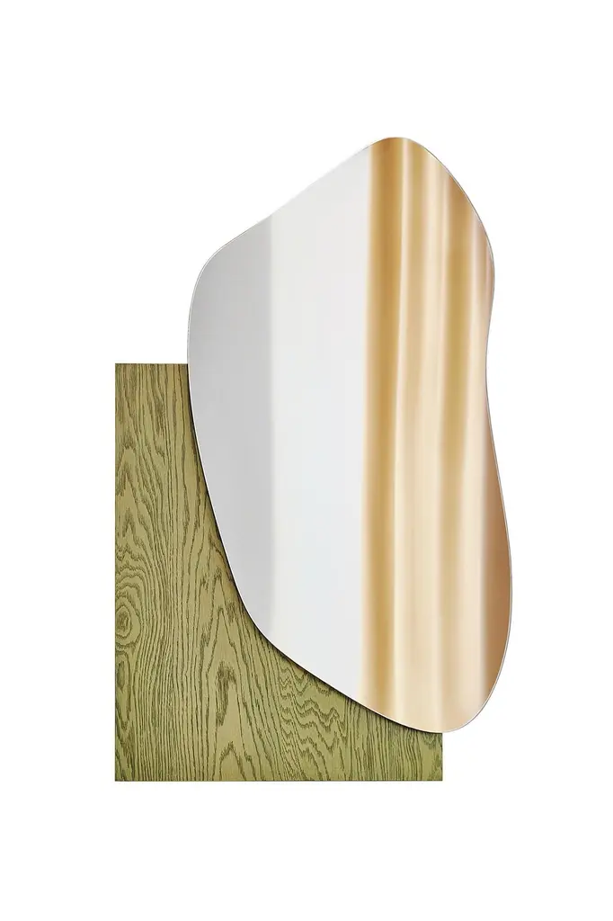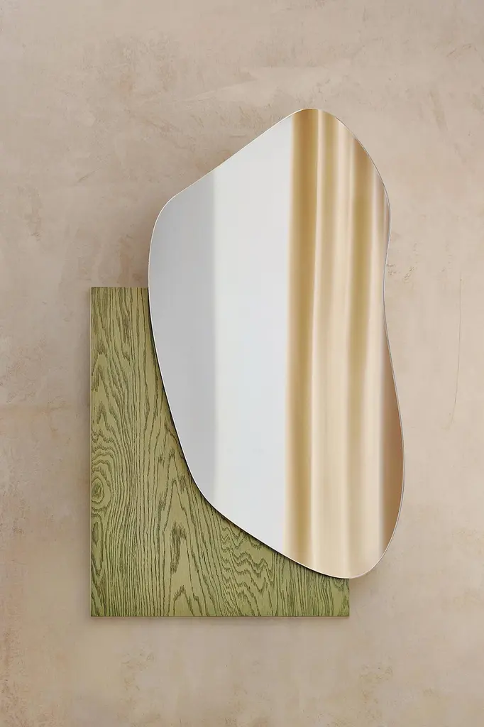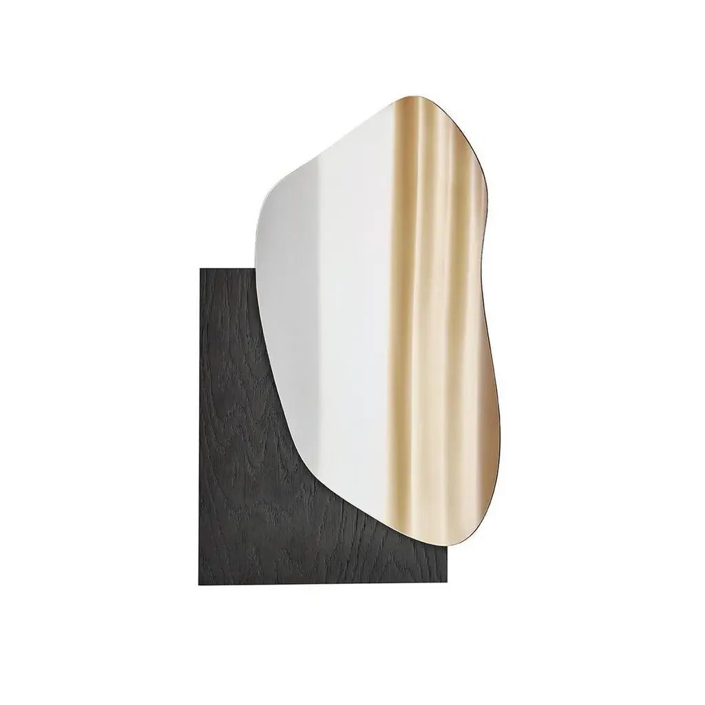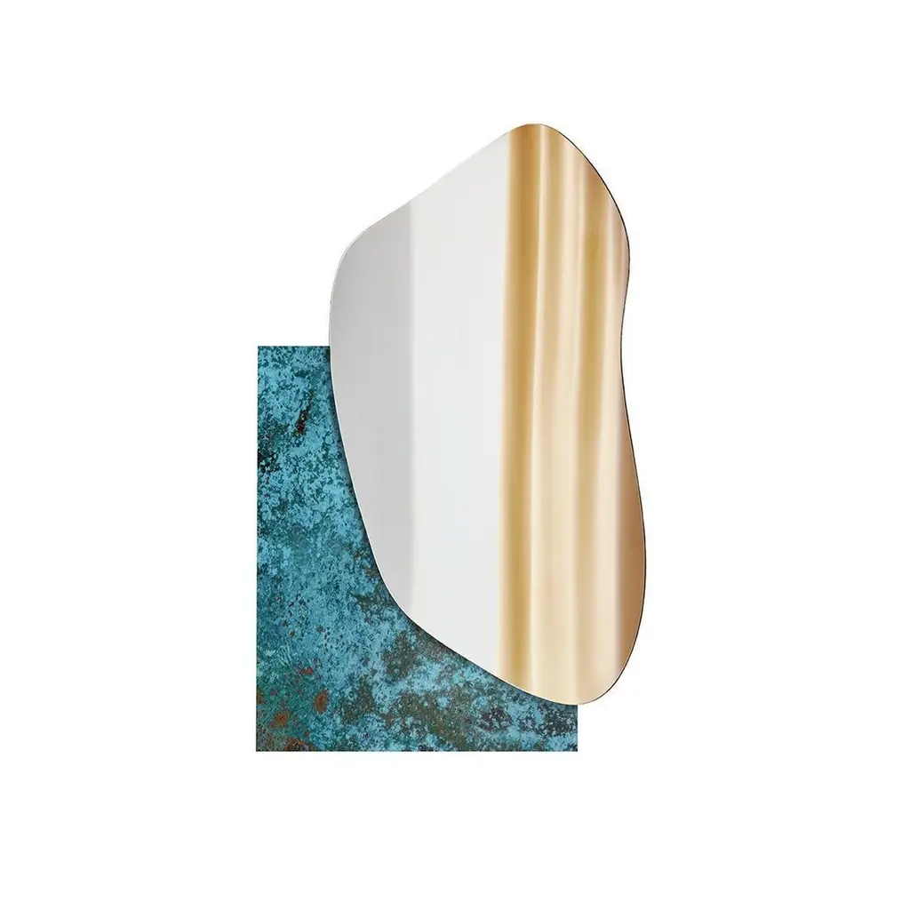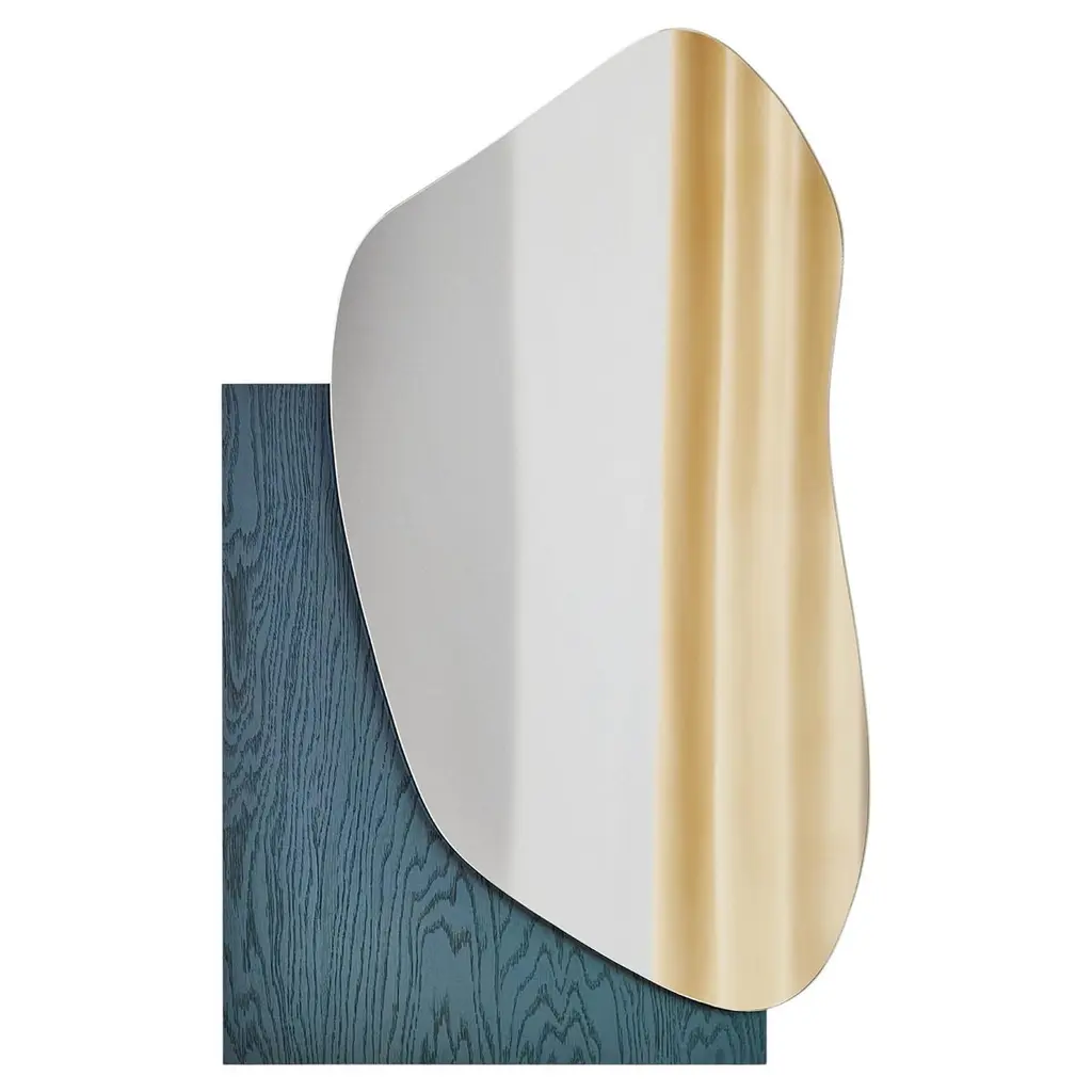 Brand: NOOMDesigners: Maryna Dague & Nathan Baraness.Type of Mirrors: Optiwhite, Black tint mirror, Copper tint mirror.Materials for base: Veneered wood, Madrona wood veneer, Burned steel, Stainless steel / Hand brushed stainless steel, Brushed brass, Brushed copper, Oxidized copper, Black Marble Alanya, Travertino Chiaro Classic, White Marble Statuario, Green Marble Verde Ocean, Onyx.Note: The main picture of the listing displays Lake Mirror 1 with Veneered wood base and Optiwhite mirror.Dimensions (cm): H 100 cm, W 67 cm, D 4 cm."Lakes" is a nature-inspired collection of sculptural mirrors designed by French designers Maryna Dague and Nathan Baraness. The collection takes its name from the shorelines of lakes and aerial views of their sinuous shapes, represented in the design. The designers have emphasized the contrast between the fluid shapes of the glass and the straight lines of the mirrors' supports, made of slabs of wood, brass, oxidized copper, marble, onyx, and other attractive materials. The collection features five designs, including a floor mirror.