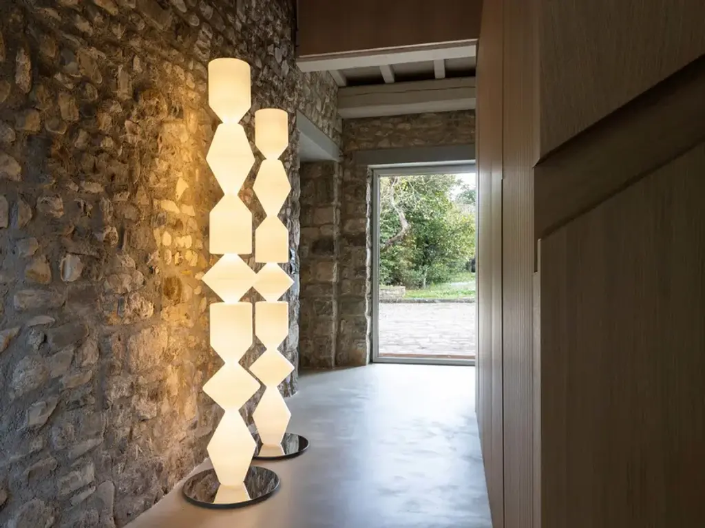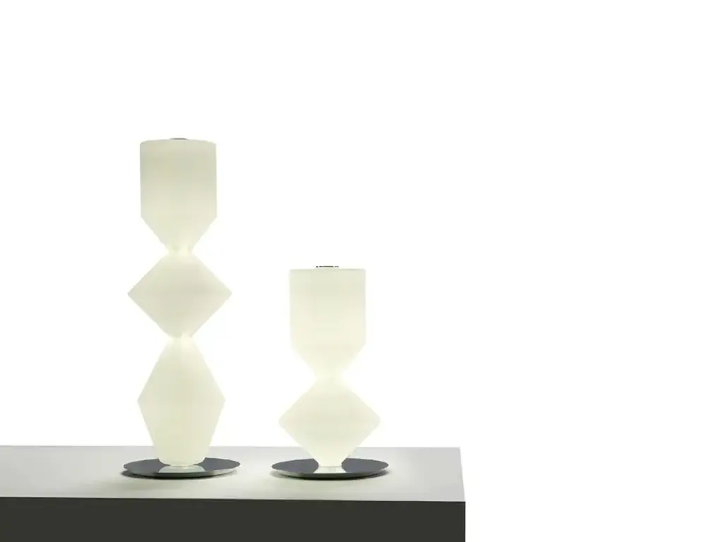 Costantina Opal is a dimmable LED floor and table lamp. It features a metal structure, opal blown glass lampshades, and a mirrored steel base.