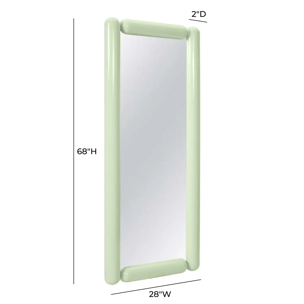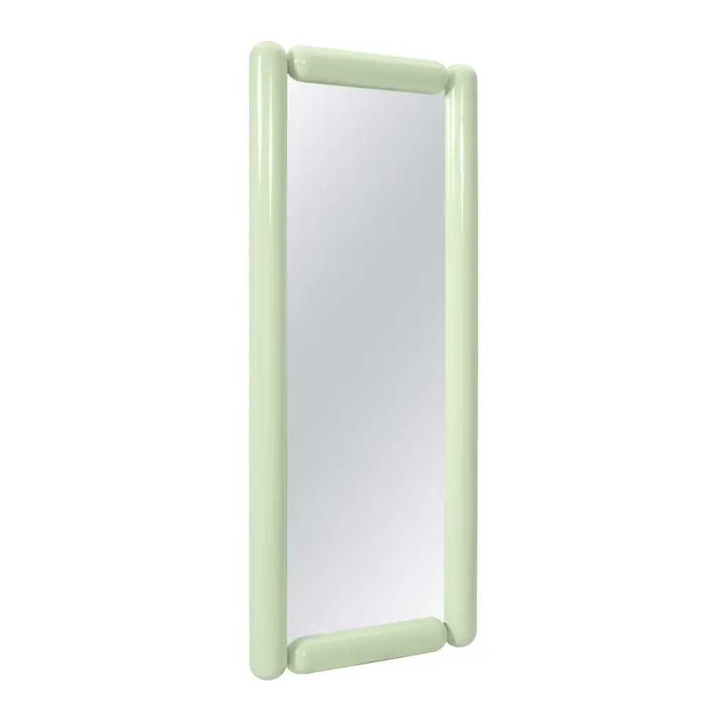 Step into a world of retro nostalgia with the Cozzi Floor and Wall Mirrors. Sporting a tubular metal balloon shape, these mirrors radiate a playful vibe that's perfect for adding a touch of sculptural charm to any room. Whether you choose the oversized floor mirror for a bold statement or the smaller wall mirror for fun-sized flair in bathrooms and cozy corners, each piece boasts a scratch-resistant high gloss finish in a myriad of pastel colors. With a sturdy metal substructure and an iron French cleat assembly bracket, these mirrors defy their weightless illusion, offering versatile hanging options that are as sturdy as they are stylish.