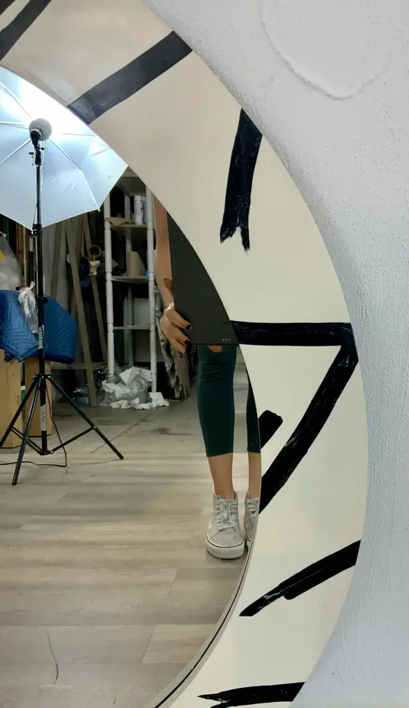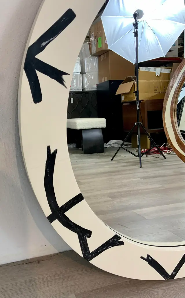 Currey & Co. Abstract Modern Black & White Wall Mirror, showroom floor sample