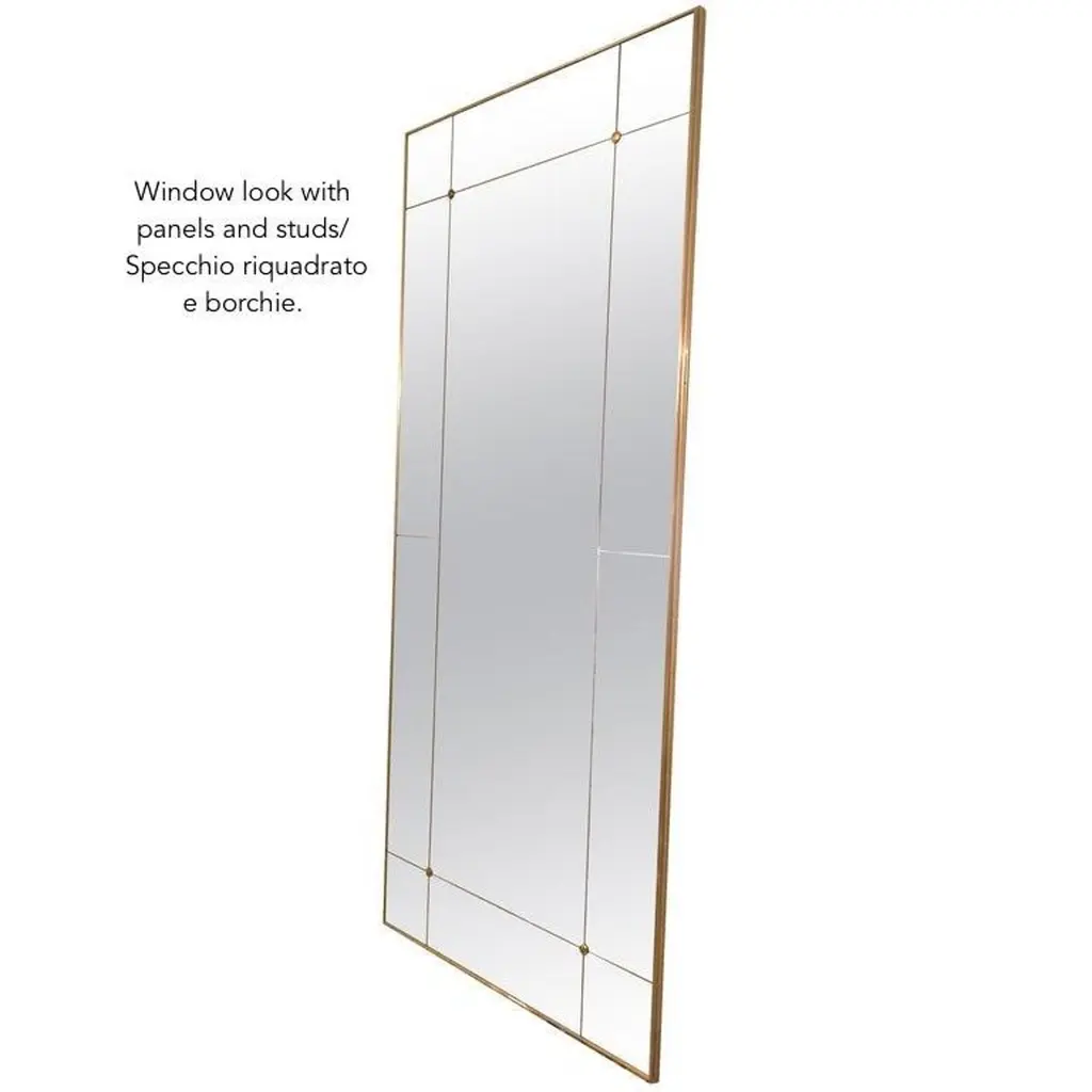 Pescetta presents its collection of contemporary customizable mirrors.With brass frame, window pane look and brass studs these mirrors replicate the idea of early 20th century Art Deco style mirrors. They suit both modern spaces which need a touch of elegance and very classical rooms which needs a wall decoration. They can be hanged in both directions or kept on the floor as floor mirrors. Each mirror is a unique handmade piece, characterized by Italian quality and taste.Lead time 20 business days. Price here refers to a mirror with following characteristics: Frame size and shape: rectangularW 100 cm 39.37 inch.H 200 cm 78.74 inch.Brass frame: Double profileBrass finishing: Aged effectMirror panels: Window look with 4 studsMirror: ClassicAccessories: Rounded studsMany details are customizable: Frame size and shape: squared, rectangular, oval, rounded, hexagonal, octagonal. Brass frame: simple profile or double profile. Brass finishing: shiny or aged effect ( little bit darker) Mirror panels: unique glass panel or Window look ( with brass studs or brass profiles) Mirror: Classic, aged effect, beveled. Accessories: studs, hangers (to transform the mirror into a coat rack), lights. Kind of mirror a) Classic: normal silver color mirror. b) Smoked: Smoke grey (cold effect) distortion of reflected colors. c) BRONZE: Bronze (warm effect) distortion of reflected colors. d) Black and white: Classic silver base and several small spots. Most used one, light distressed effect, clear vision, no distortion of reflected colors. e) Black and white /Bronze: bronze base and several small spots. Warm Bronze dis-tortion of reflected colors. f) Silver: strong distressed look, silver base with large spots as per mirrors from 18th century. Blurred vision in the complex. g) Saturn: medium distressed look, silver base and several large light spots. Reflected colors are darker in complex. h) Antique Venetian: several light spread big spots which gently turn reflected colors into powder pink tone. Low distressed look.