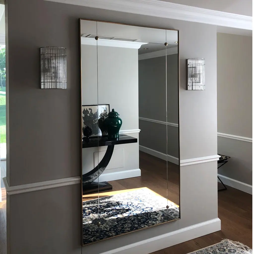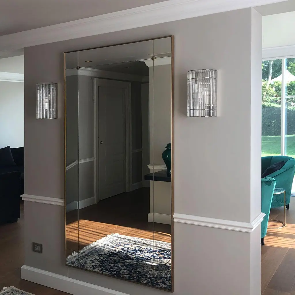 Customizable Art Deco Style Brass Frame Window Pane Look Mirror 100 X 200 Cm