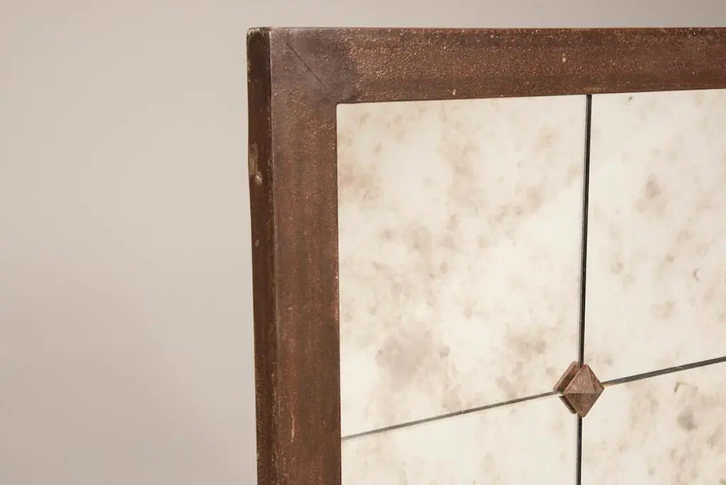 Customizable industrial style silver window pane distressed iron look mirror. Pescetta presents its collection of industrial, distressed look iron frame mirrors. Each mirror is a unique handmade piece, characterized by Italian quality and taste. Not only industrial-style-lovers will appreciate these mirrors. They suit both Industrial style open space lofts and Classic elegant interiors seeking for eclectic and glam effect, offices, restaurants or shops which need a touch of grit. They can be hang or kept on the floor as floor mirrors. Production time: 20 working days, worldwide shipment: 15 daysHere we propose ( and price refers to ) a mirror with following characteristics:Frame: industrial silver distressed look Shape: archMirror: distressed mirror effect (black and white) Accessories: rounded studs . Size: H 59" in. x W 31" in. x D 1.19 " in.H 150 cm x W 80 cm x D 3 cmDesign your own mirror! Many details are customizable.1) Frame size and shape: squared, rectangular, oval, rounded, hexagonal, octagonal or your design. The frame is 3 cm large and deep, “L” shaped. 2) Iron frame finishing: Industrial, rusty, gold, copper, silver, shiny or mat black. 3) Mirror panels: unique panel or multi panels for window look effect.4) Accessories at panels intersections: diamond shape or round shape studs, lights, hangers to transform the mirror in a coat rack.5) Type of glass: Classic, smoked, bronze or age effect. Beveling is possible. a) Classic: normal silver color mirror. b) Smoked: Dark grey distortion of reflected colors.c) Bronze: Bronze distortion of reflected colors.d) Aged black and white: Classic silver base and several small spots. Most used one, light age effect, clear vision, no distortion of reflected colors. e) Aged black and white/bronze: bronze base and several small spots. Bronze distortion of reflected colors.f) Aged silver: strong age effect, silver base with large spots as per mirrors from 18th century. Blurred vision in the complex. g) Aged saturn: medium age effect, silver base and several large light spots. Reflected colors are more grey and dark.h) Aged antique Venetian: several light spread big spots which gently turn reflected colors into powder pink tone.