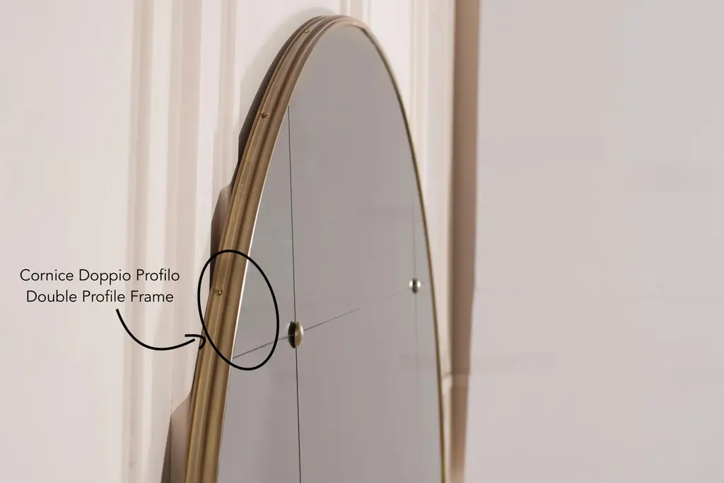 Customizable Rounded Brass Frame Window Pane Look Mirror Art Deco Style 180 Cm