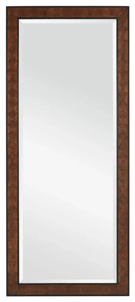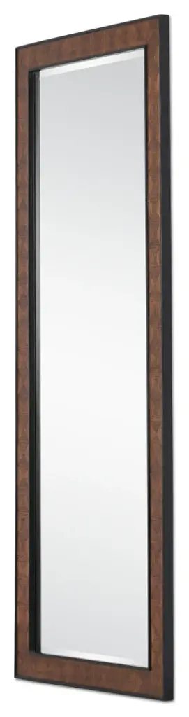 With gorgeously rich surface details, the Dorian Floor Mirror is clad in oak veneers that are laser cut and laid in place like pieces being fitted into a jigsaw puzzle. The frame of diamond box patterns are flanked by black racing stripes to add depth to the piece. The fact that each element is cut and hand-applied makes this an artisanal statement, and the wood mirror''s beveled edges add character to the creation. This lovely mirror was designed by Aimee Kurzner.