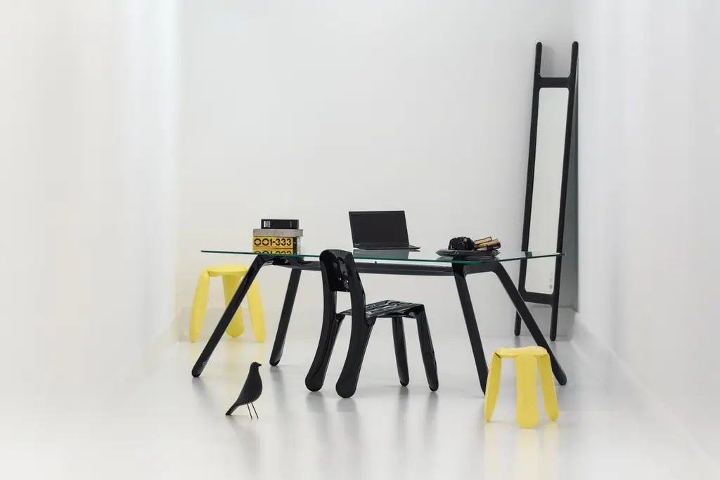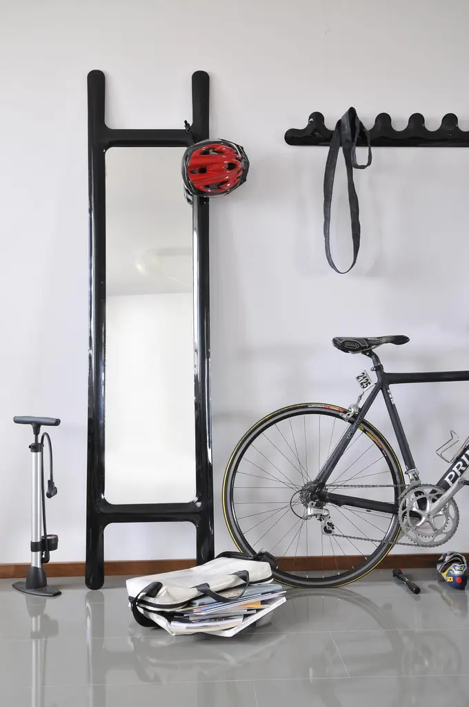 Drab Mirror Black Glossy Color Carbon Steel Floor Mirror By Zieta