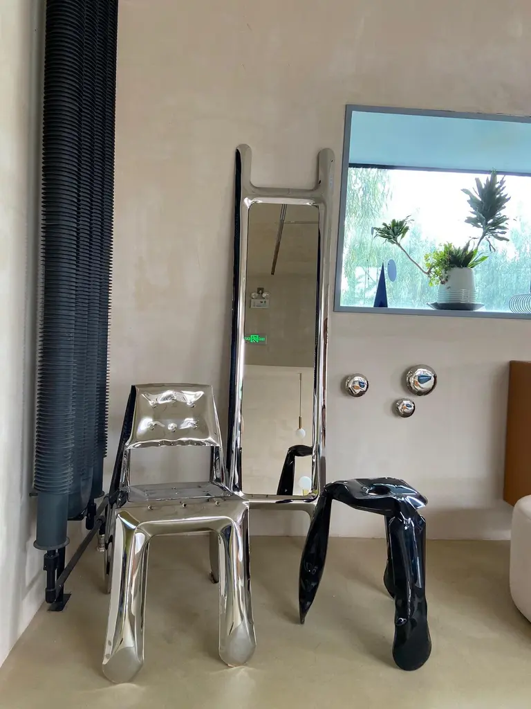 Drab Mirror Polished Stainless Steel Floor Mirror By Zieta