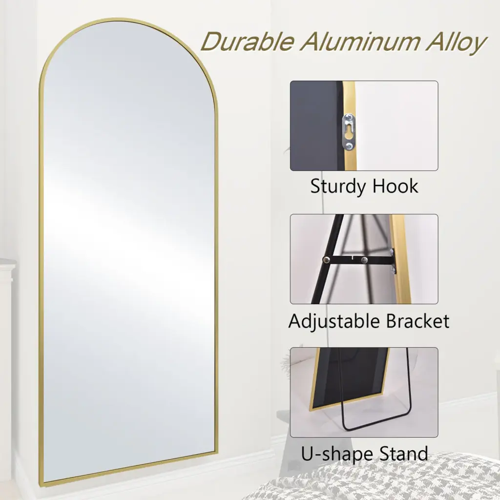 Easly 30x71 Arched Aluminum Alloy Framed Oversized Standing Floor Mirror, Gold