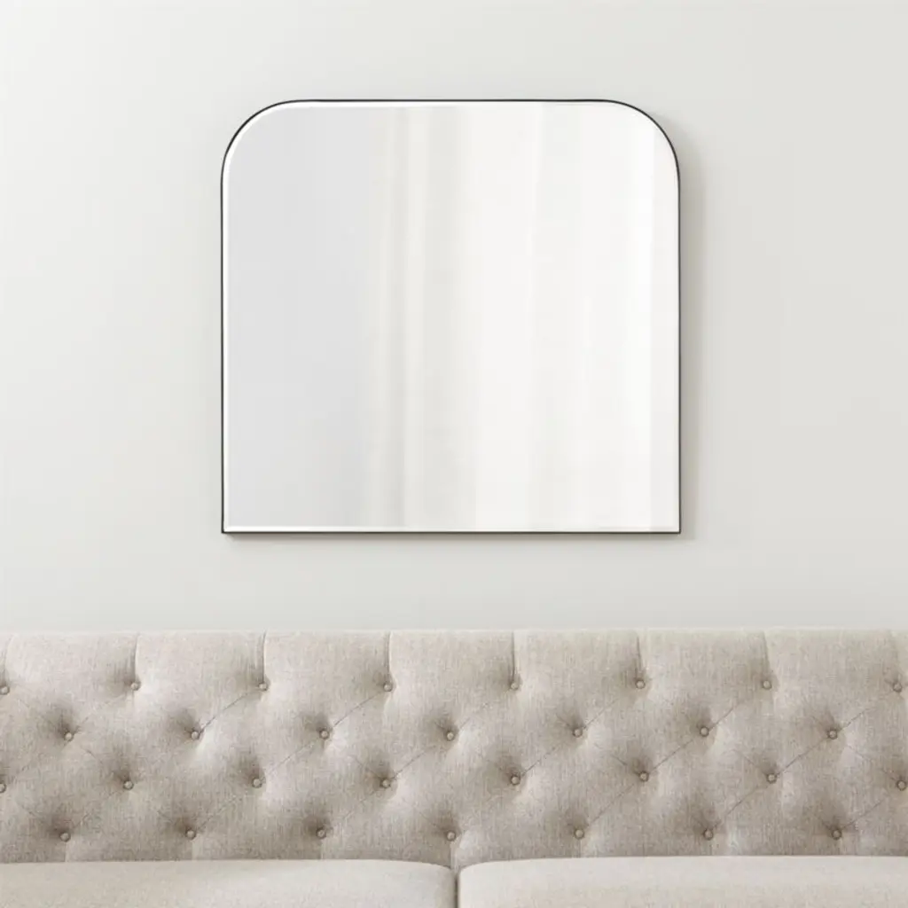 Edged with a slim black band, this minimalist wall mirror curves a subtle arch of modern elegance. With its black-finished stainless steel frame, the arched wall mirror is an understated essential in any room and is safe to hang in bathrooms. Group with our Edge round, capsule, and rounded rectangle floor and wall mirrors in silver, brass and black to create an intriguing geometric display.