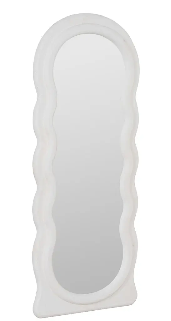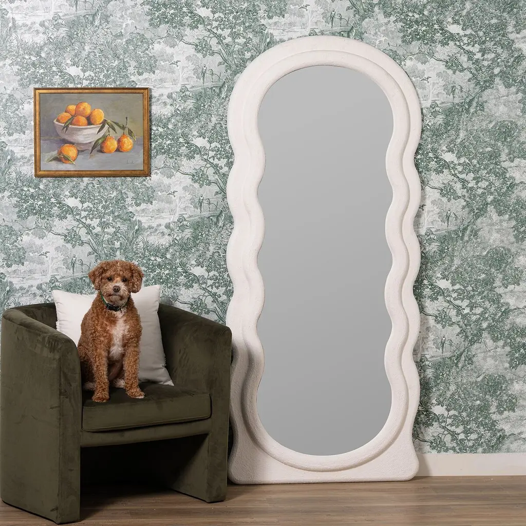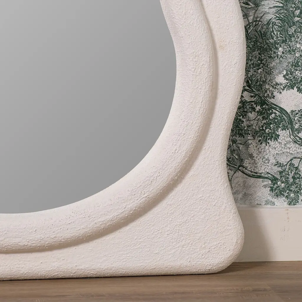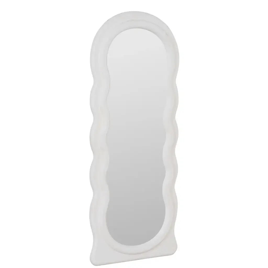 Eldric Wavy Floor Mirror, White Faux Plaster