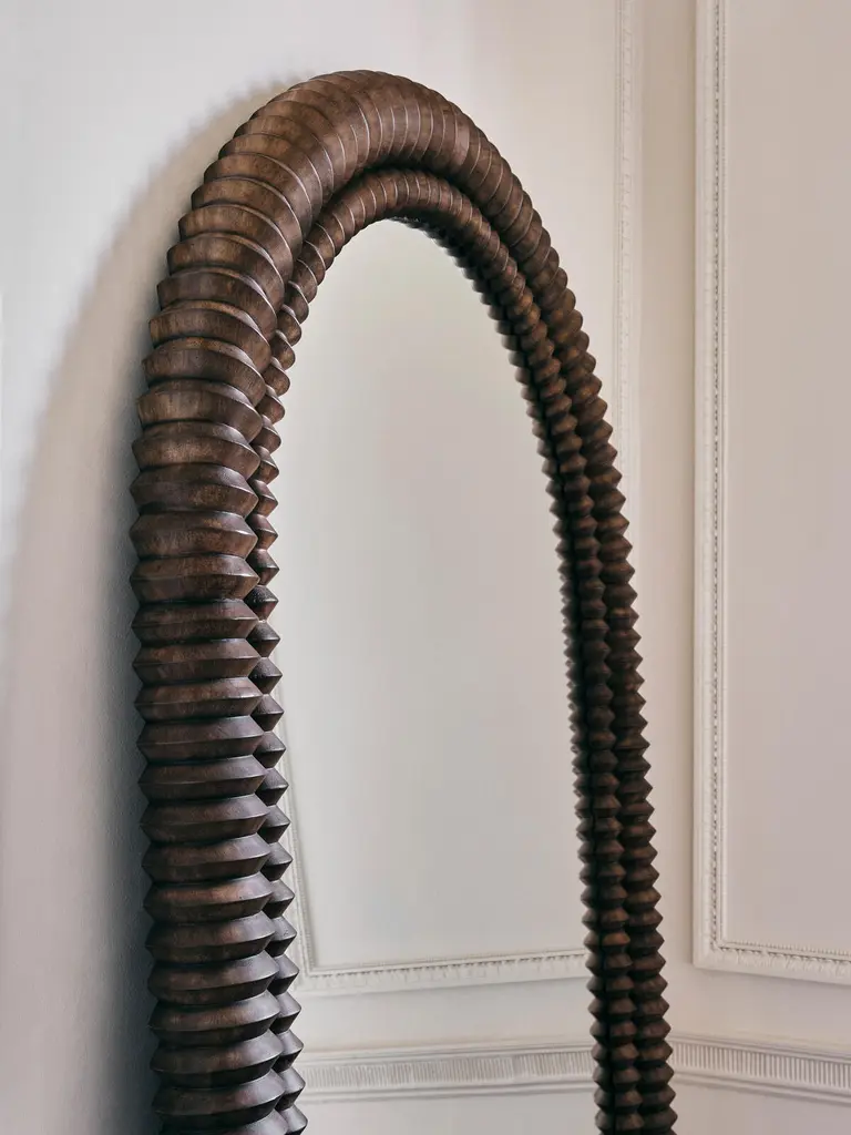 The Emery is an oversized mirror with a cast, wood-effect surround. It's inspired by the statement mirrors that can be found in our upcoming House opening in Tel Aviv.