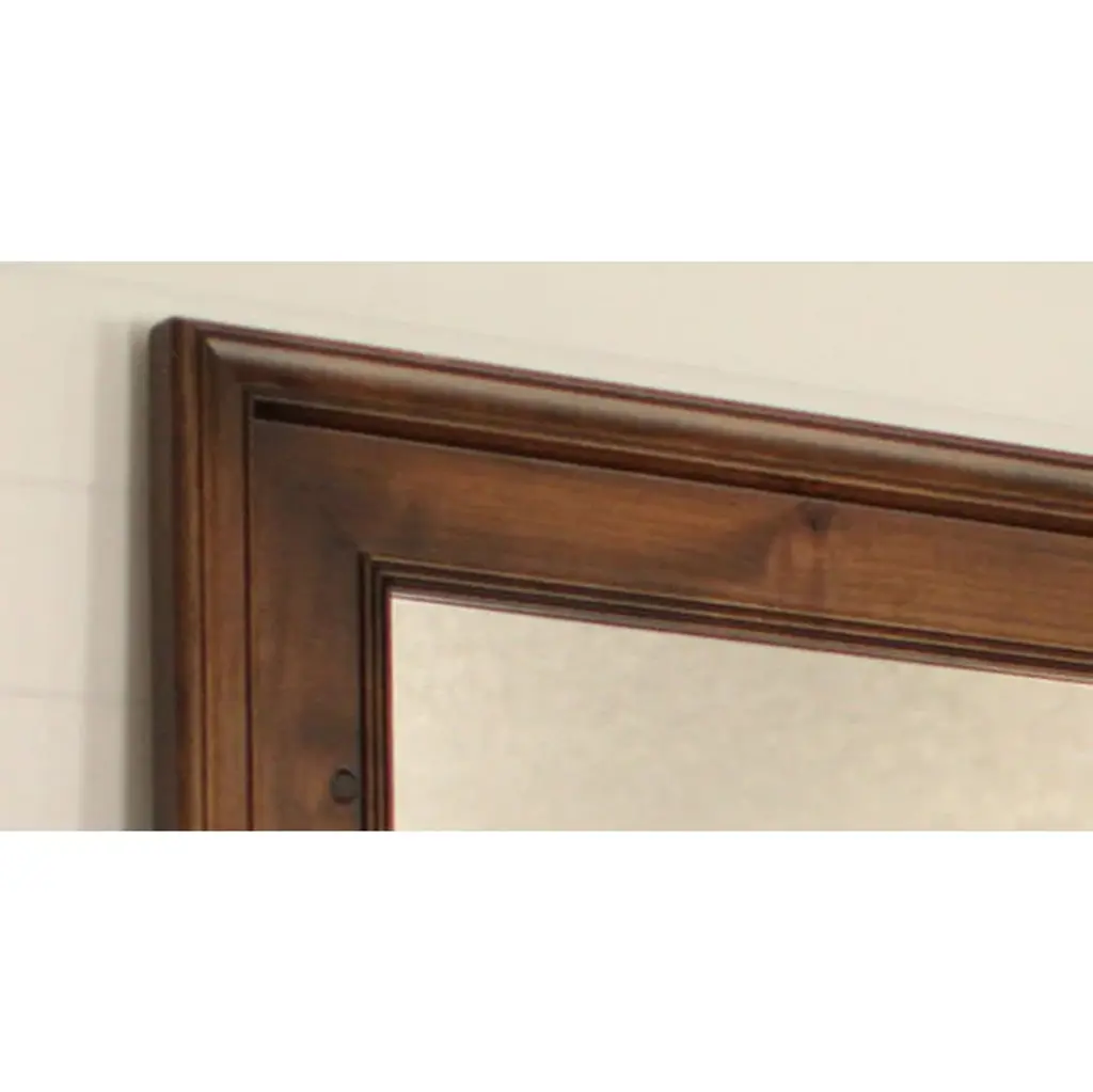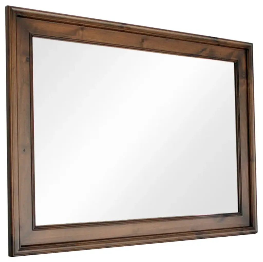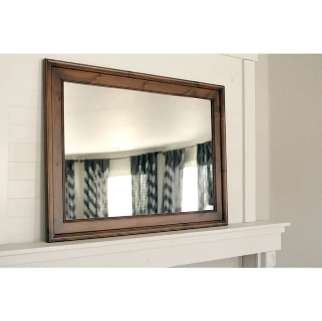 Our Espresso stained Knotty Alder Mirror is crafted by hand and is a rich addition to your home. The dark finish of the frame will complement the dark tones of your hardwood flooring and tie the whole space together. Place your mirror in a small room to give the illusion of more space or in a large open room for greater interest and dimension.3.5" frame width. Mirrors are sized according to their exterior dimensions. Viewable mirror is about 7" smaller for both dimensions. (i.e. For a 20X30 size, a 13X23 inch mirror will be viewable). Hanging hardware comes included. Due to the nature of authentic knotty alder wood, each mirror will have unique grain patterns and knots. Each piece is one-of-a-kind.
