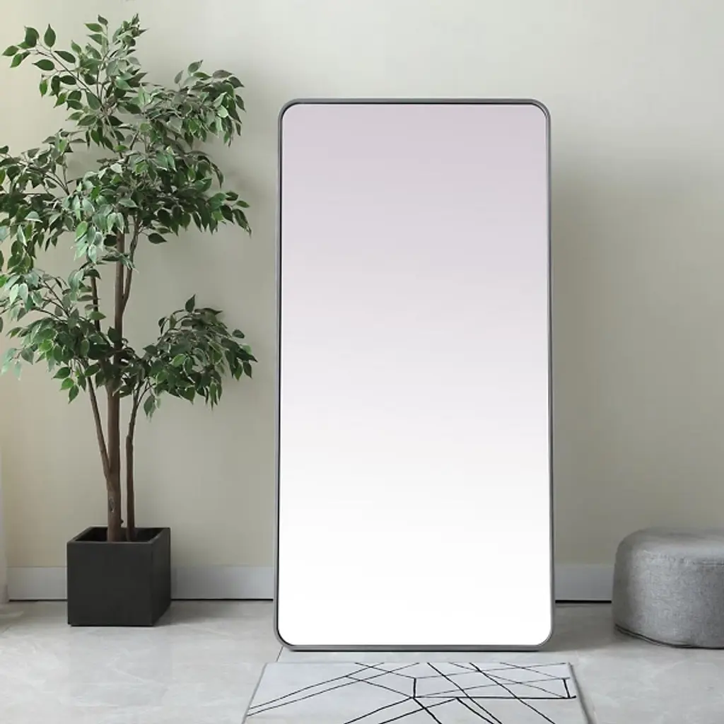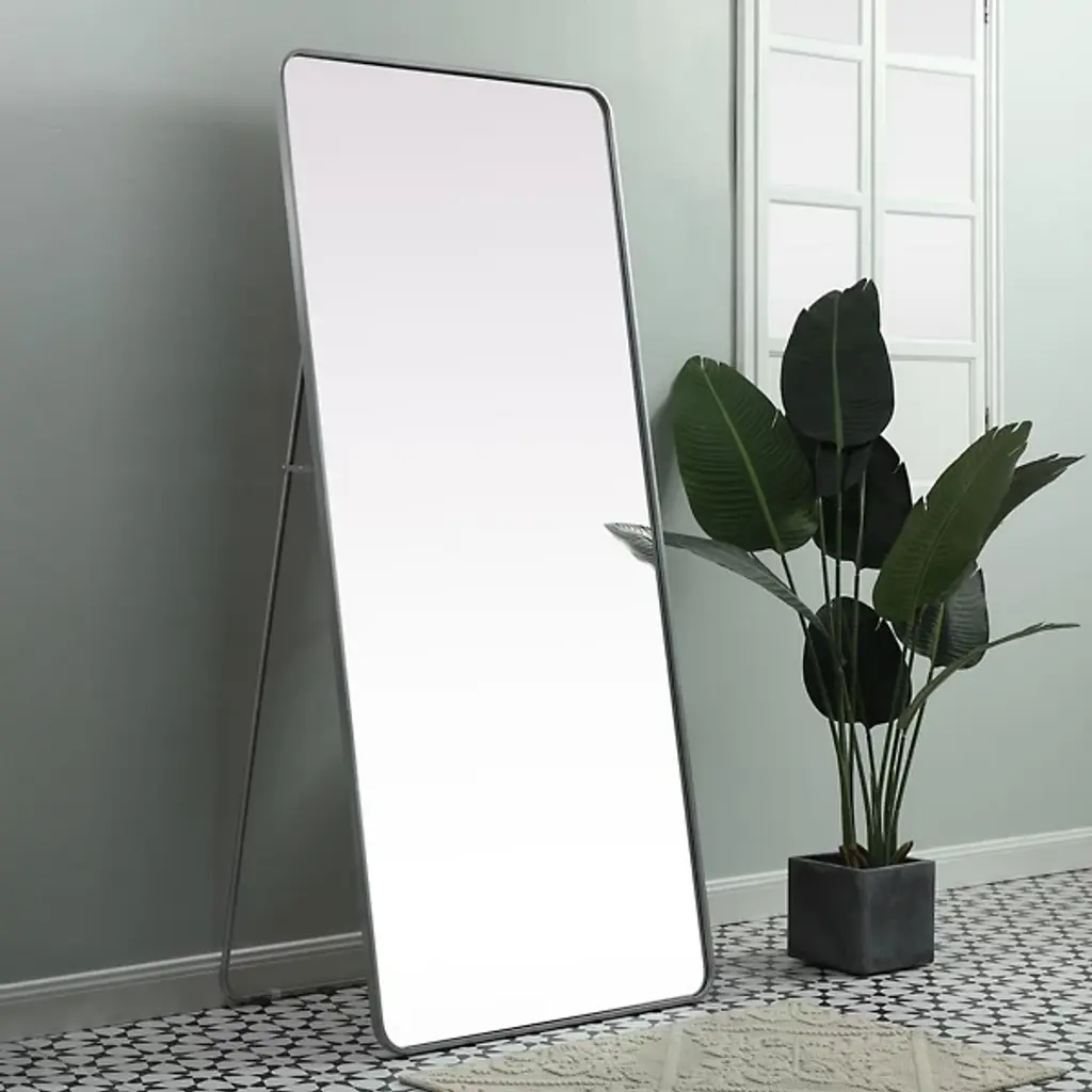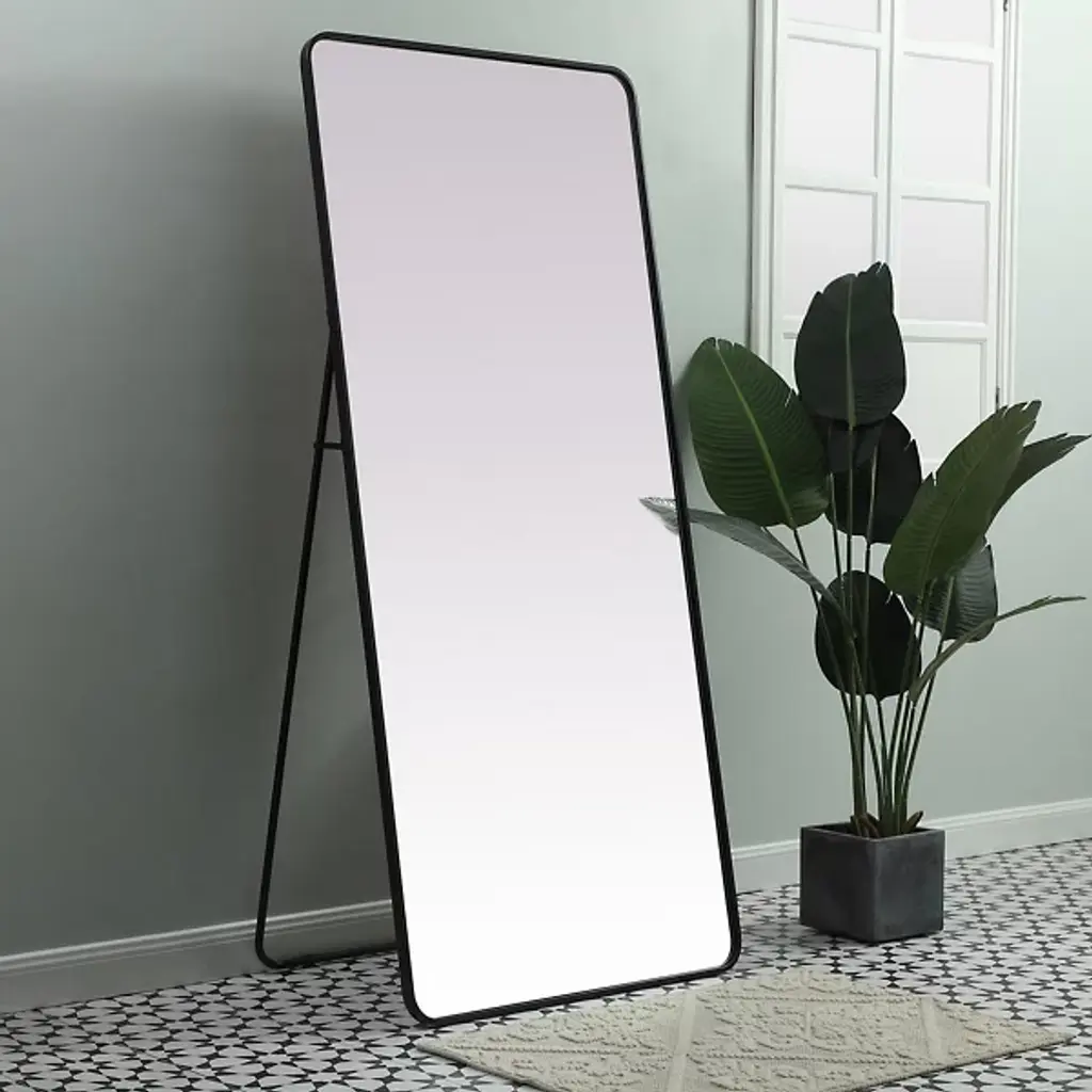 The Evermore Rectangle Full Length Floor Mirror from Elegant Lighting adds a sleek mid-century modern accent that instantly opens up any room. Featuring a round-cornered, slim iron frame, this mirror has the look of a window, blending style with functionality. Its minimalist frame is simple and sophisticated, adding elegance to any home or office.