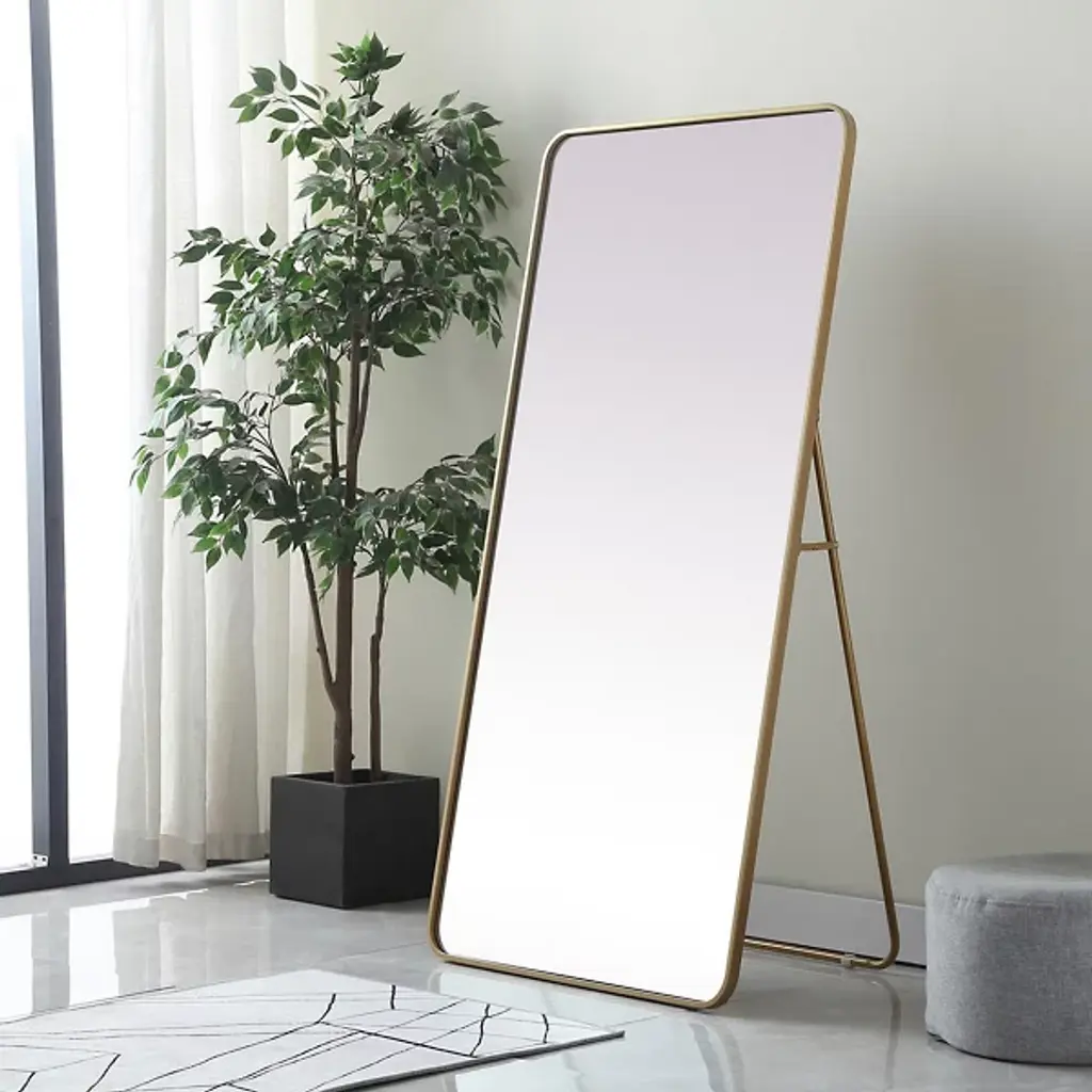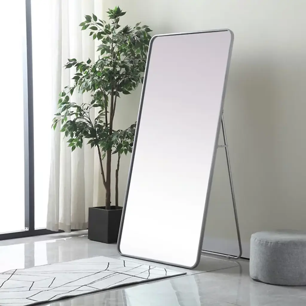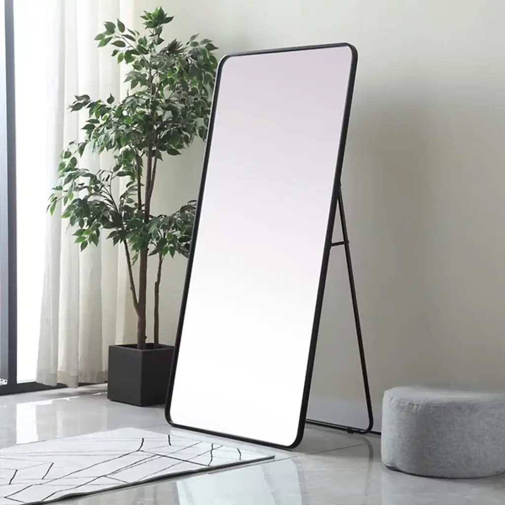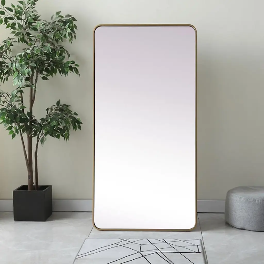 The Evermore Rectangle Full Length Floor Mirror from Elegant Lighting adds a sleek mid-century modern accent that instantly opens up any room. Featuring a round-cornered, slim iron frame, this mirror has the look of a window, blending style with functionality. Its minimalist frame is simple and sophisticated, adding elegance to any home or office.