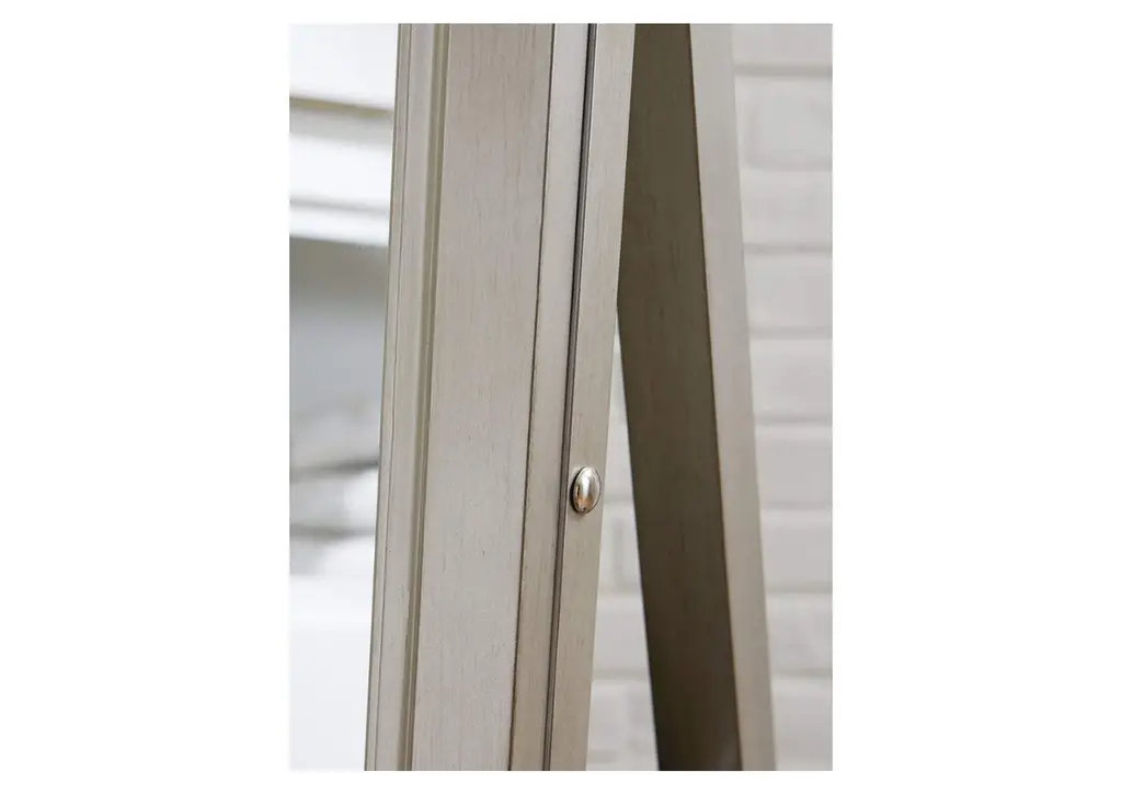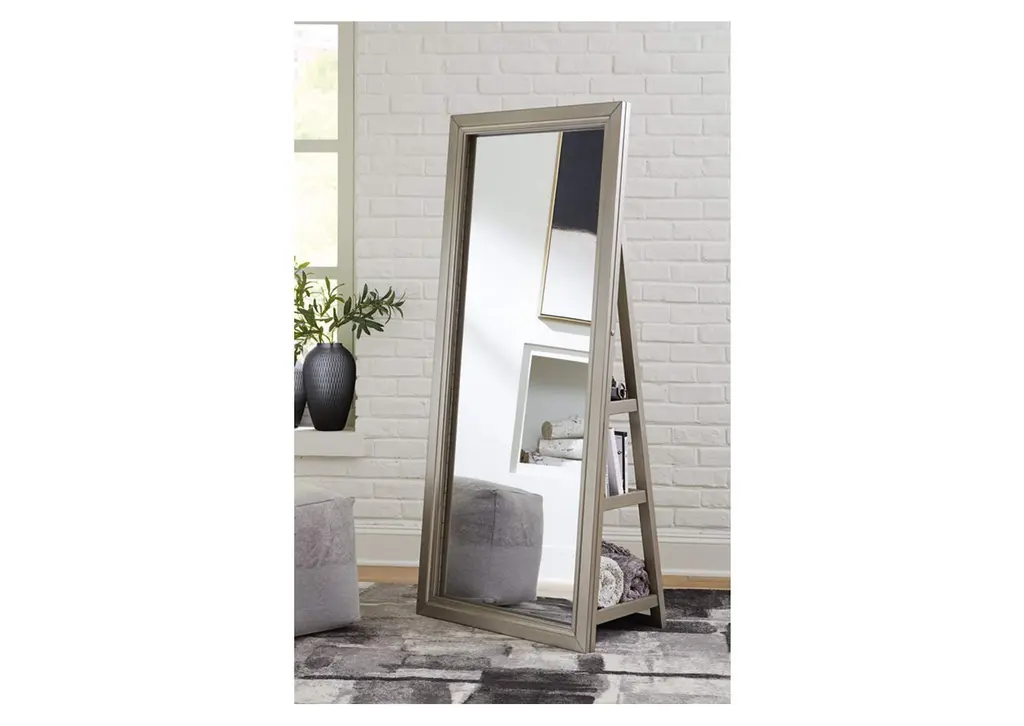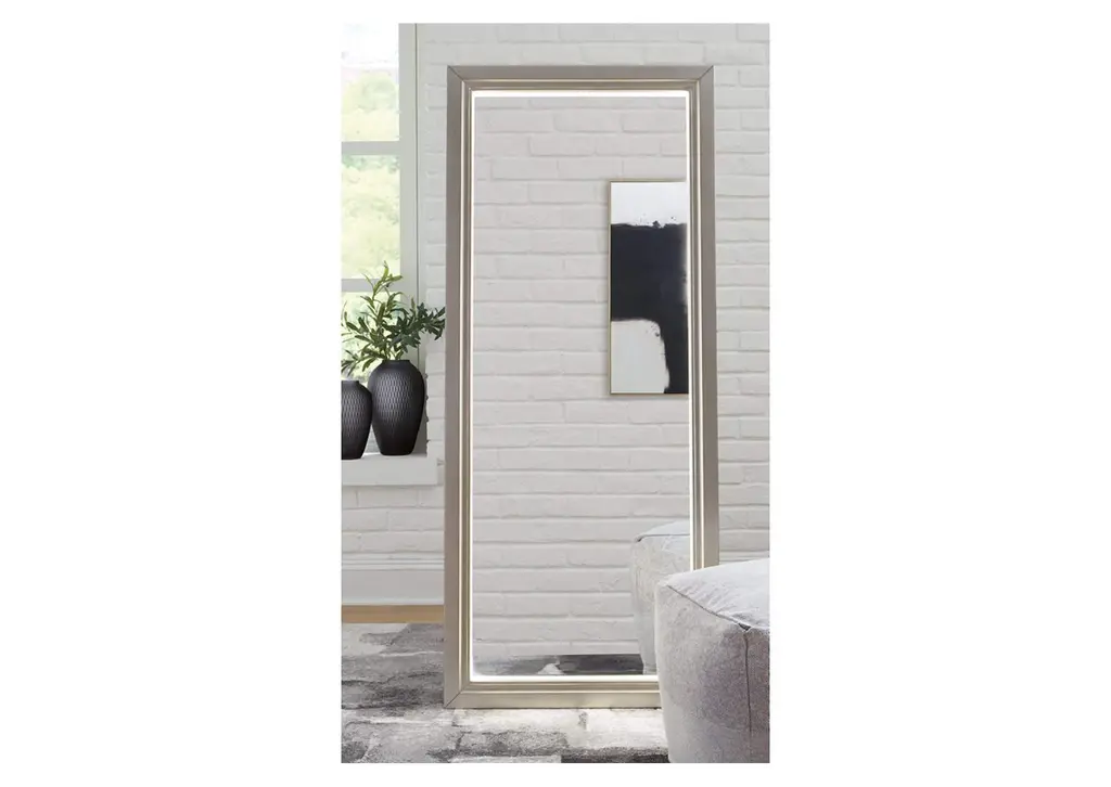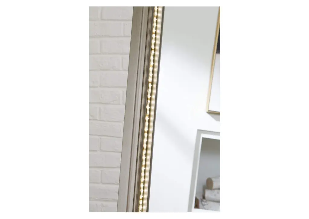 This floor mirror with storage makes on-the-go glam effortless. Complete outfits with accessories in an instant—with easy-to-access shelving on the back, you can keep all your favorites on hand. And last-minute makeup touchups are made easy with sleek LED lighting around the frame. With its contemporary styling, this mirror helps you look your best while keeping your home right on trend. Weight 73.000 lbs. (32.85kgs.)