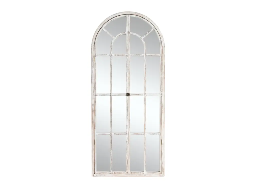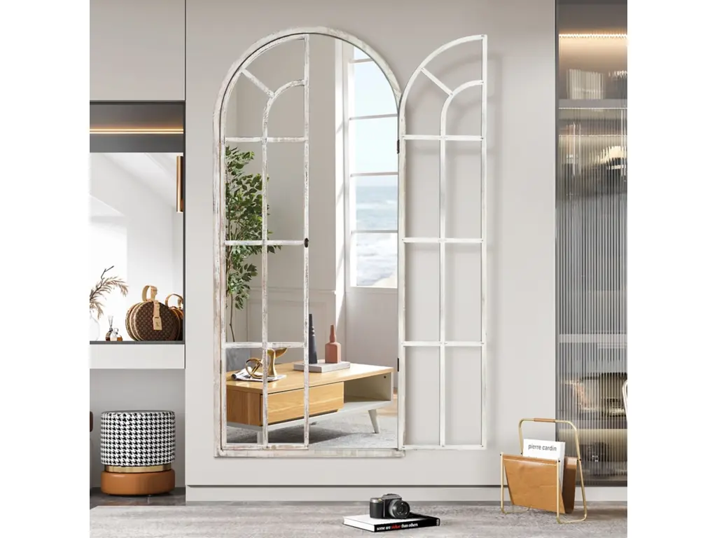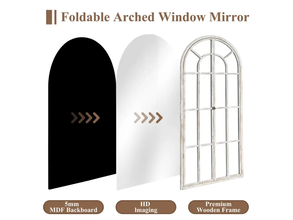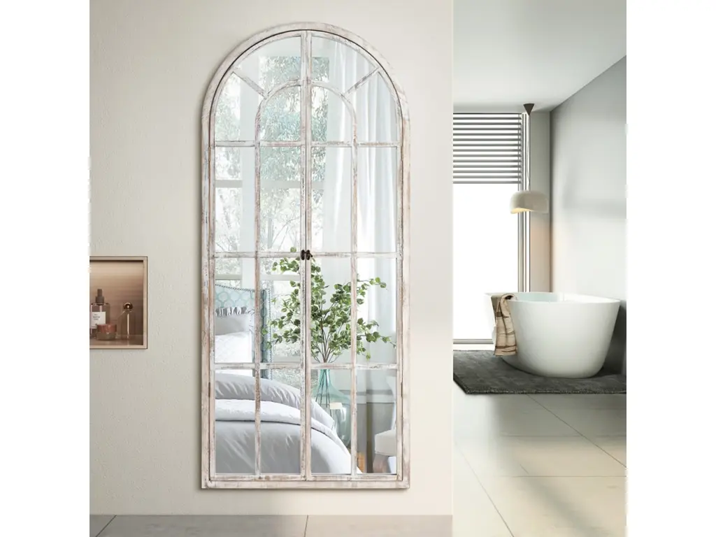 The Arch-Top Wall Mirror is a stunning blend of rustic charm and functionality, perfect for any room in your home. This mirror features a unique window-inspired design with an added touch of elegance, and the window lock allows you to control its openness. Crafted with a solid wood frame, this mirror is built to last, ensuring years of service. Its arch-top silhouette adds a touch of antique allure, making it an ideal decorative piece.