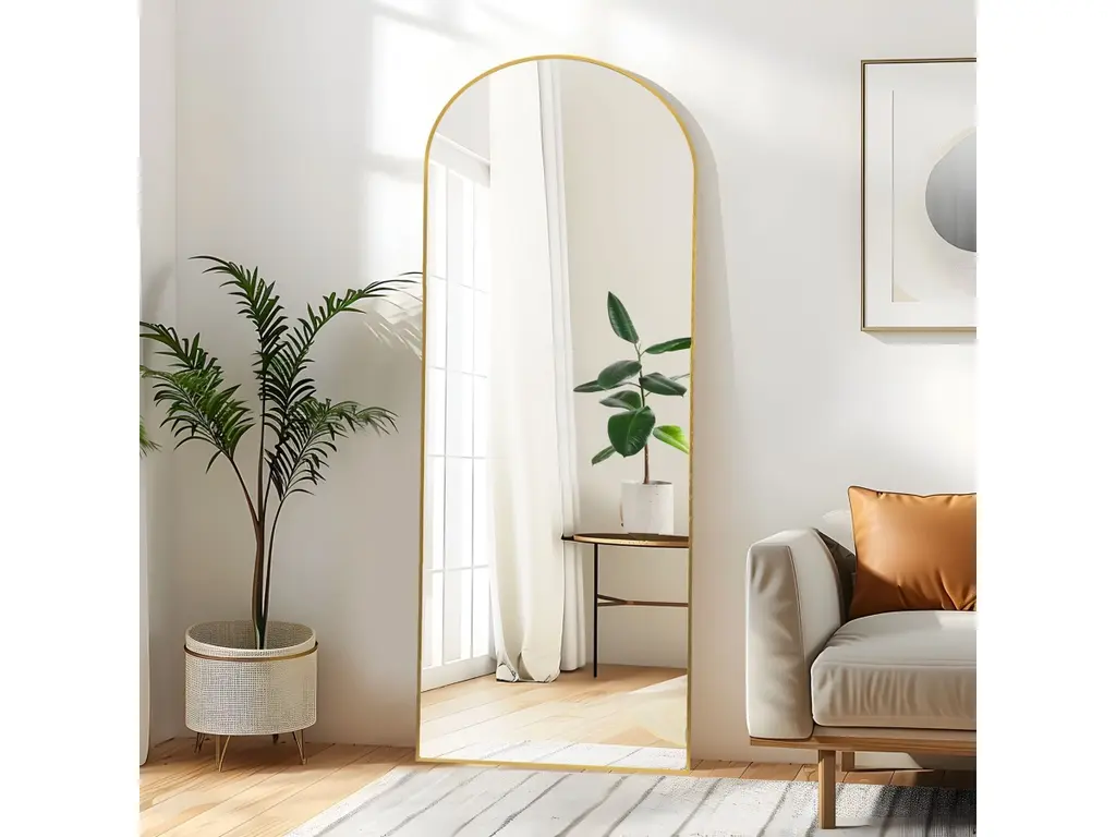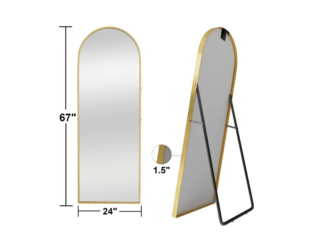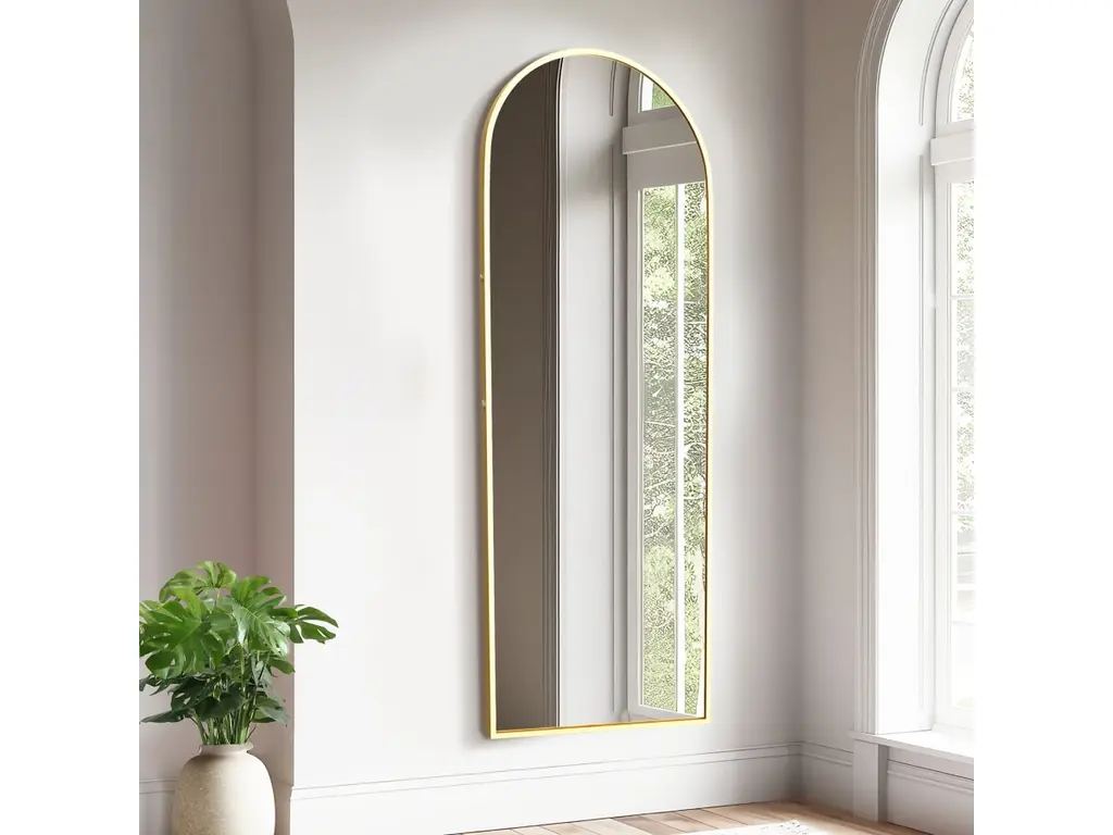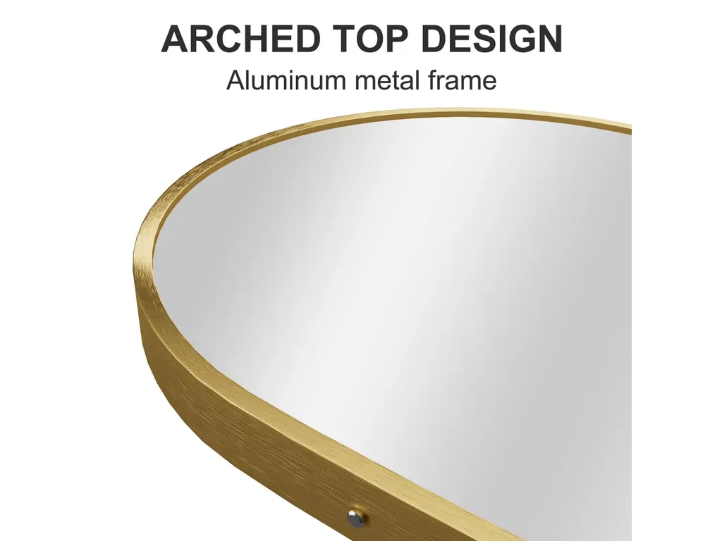 The Sleek Arched Mirror enhances home decor with its unique blend of style, functionality, and adaptability, making it a standout addition. Its captivating arched design and slender metal frame imbue any space with elegance and charm, making it a focal point. Elevate any room's ambiance with this statement piece that seamlessly merges aesthetics with practicality.