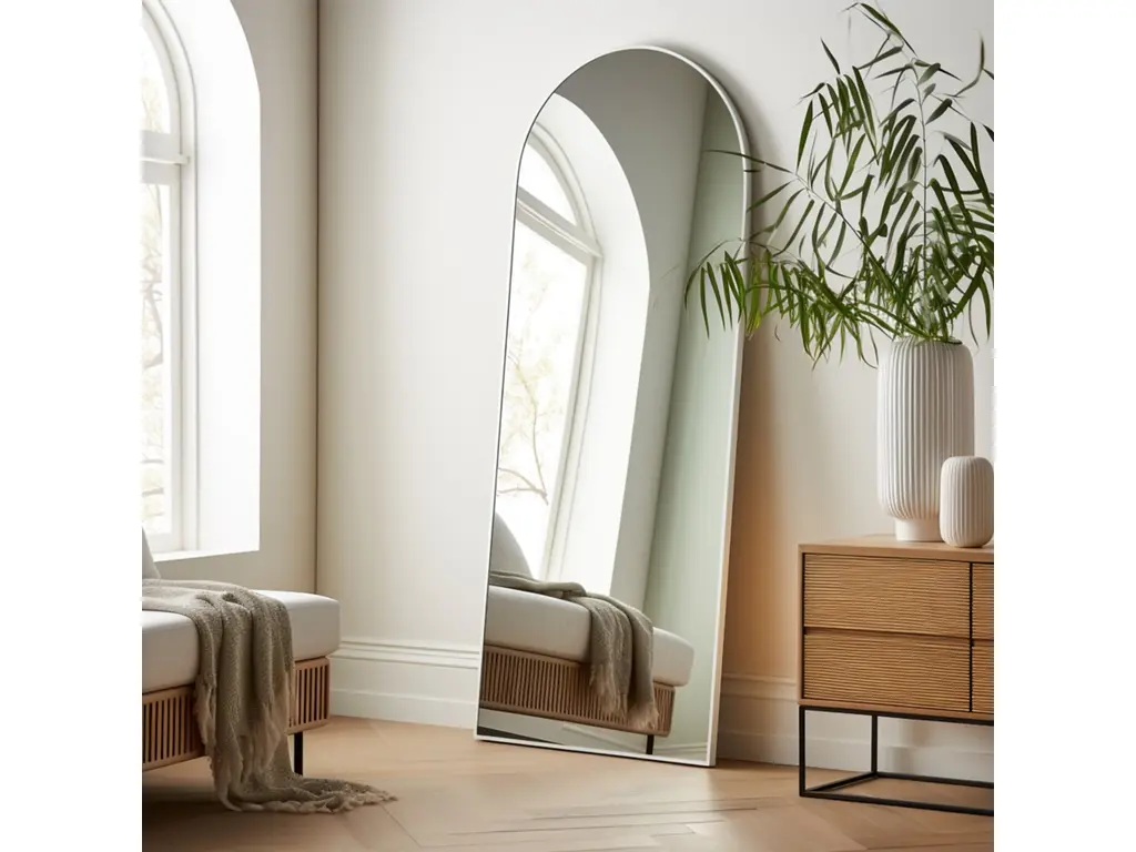 Elevate your home decor with our unique Arched Frame Mirror. Its sleek arched design and frame add style and elegance to any room. Choose from a variety of colors to match your decor seamlessly. This versatile mirror comes with a removable bracket, allowing you to place it in your living room or bedroom as you like. You can also opt to mount it on the bedroom wall to save space.