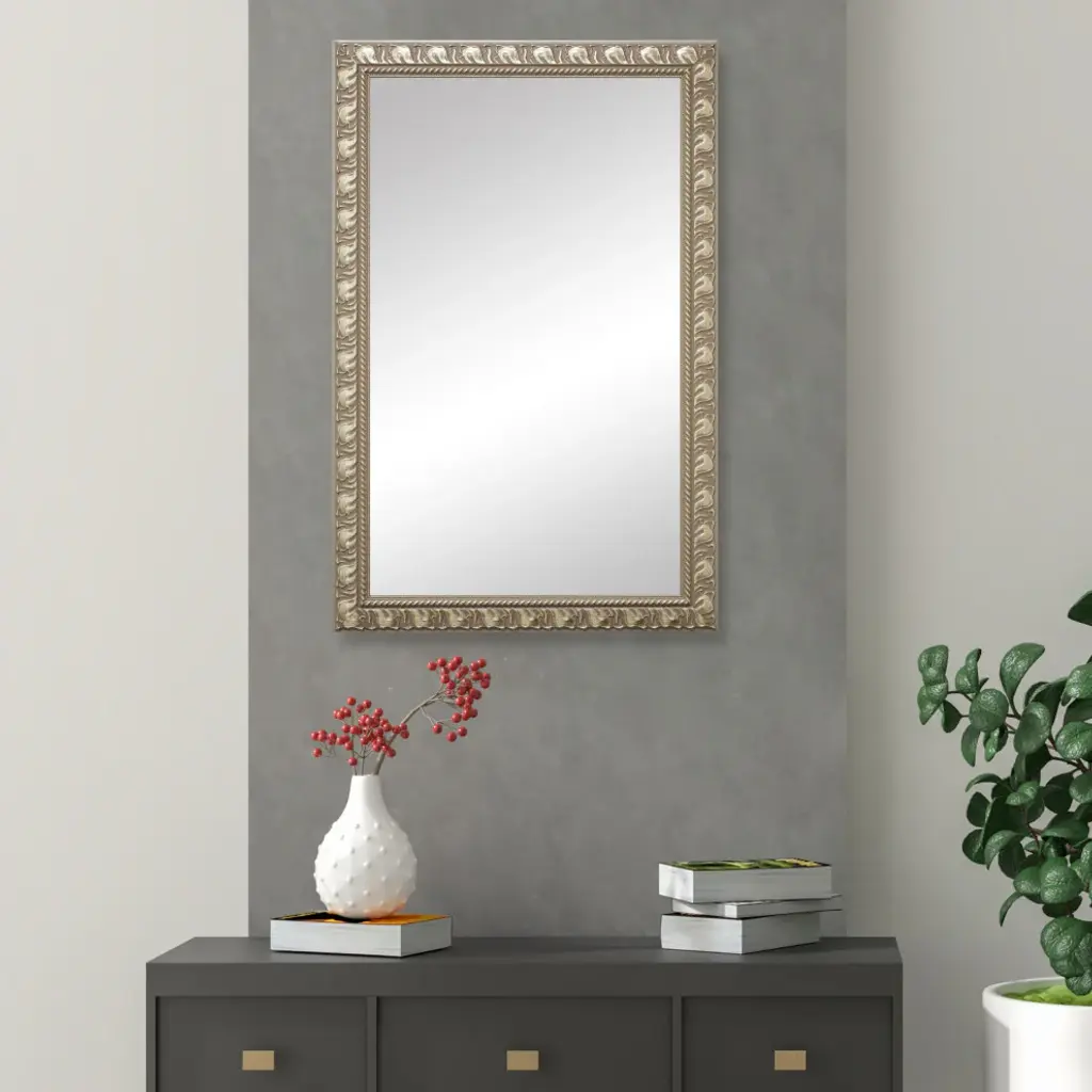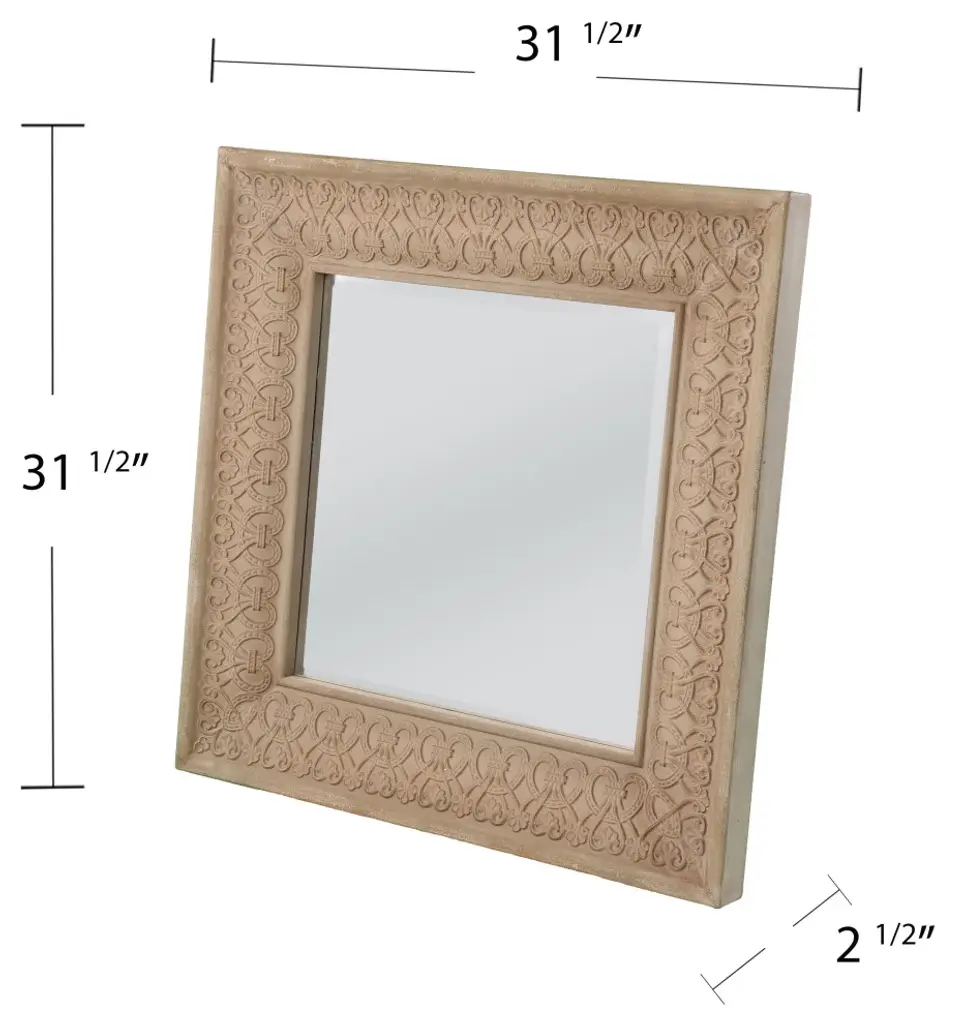 Bring classic texture and functional design to your space with the Folan Mirror. A beveled center mirror adds depth to your small space floorplan, while the decorative frame creates a traditional feel throughout your home. Ideal for nearly every room, this hanging mirror works as a stylish statement piece in your entryway or dining room or as functional d_cor in your powder room or living area. Elevate your design with intricate detail when you add this carved mirror to your space.