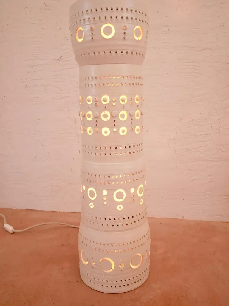 Georges Pelletier Totem Floor Lamp In White Enameled Ceramic