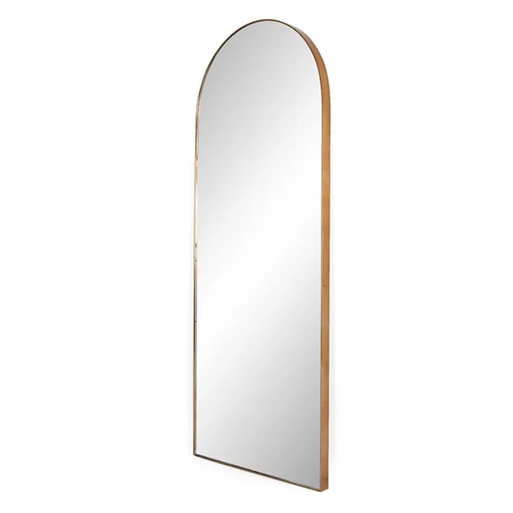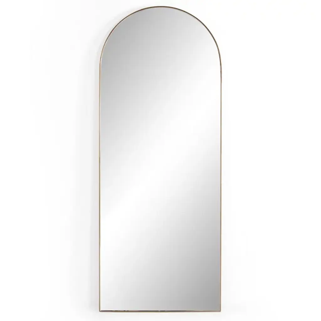 The Georgina Arch Floor Mirror from Four Hands is recognized for its ultra-slender framework. Despite its delicate appearance, this arched mirror is made for durability, comprising strong iron and stainless steel to keep it protected. It can be easily placed on hard-surface floors and set up near a wall, adding a touch of class to your living space. This mirror can be used as a statement piece while maintaining its functionality, as reflections are presented with the utmost clarity.