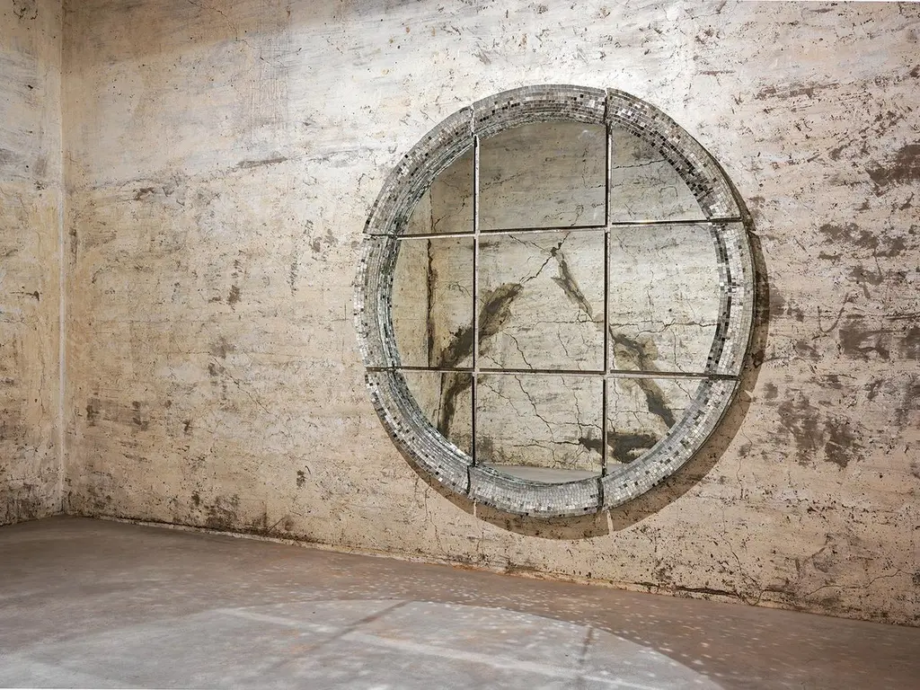 Giantpond mirror by Davide MedriMaterials: mirror, glass mosaic (silver)Also available in gold and black/bronze.Dimensions: H 210 x D 210 cmDavide Medri was born in Cesena on August 7th 1967 and graduated at the Academy of Fine Arts in Ravenna, the Gino Severini State Mosaic Institute and the Albevainer Professional Mosaic School.After various artistic experiences, with the meeting with the Dilmos gallery in 1997, the first furnishing accessories in mirror mosaics were created. Today's portfolio includes, in addition to glass mosaic mirrors: tables, floor lamps, wall lamps and works of art.The manufacture is completely handmade inside the laboratory in Cesena. Every single piece of glass is cut and fixed by hand guaranteeing high quality, each artistic element is unique in its design and can be tailor-made in any size.Davide Medri's works of art have been successful in terms of market, press appreciation and recognition by architects and interior designers in Italy and abroad.