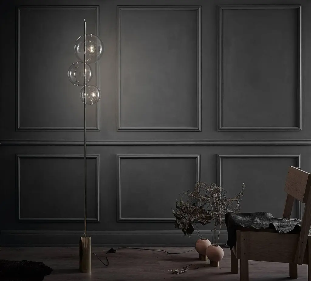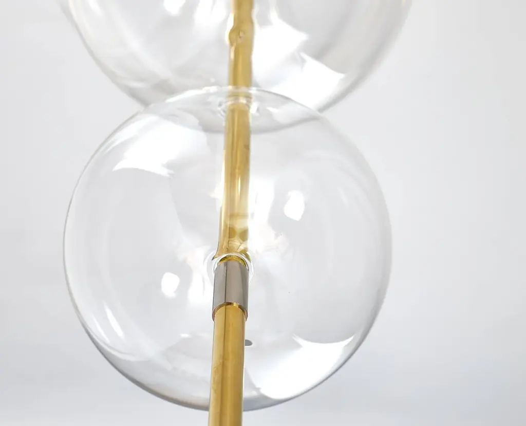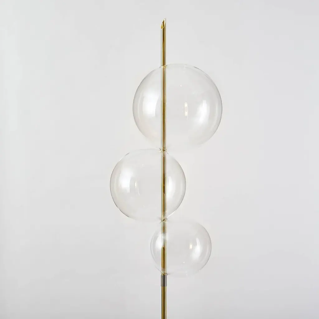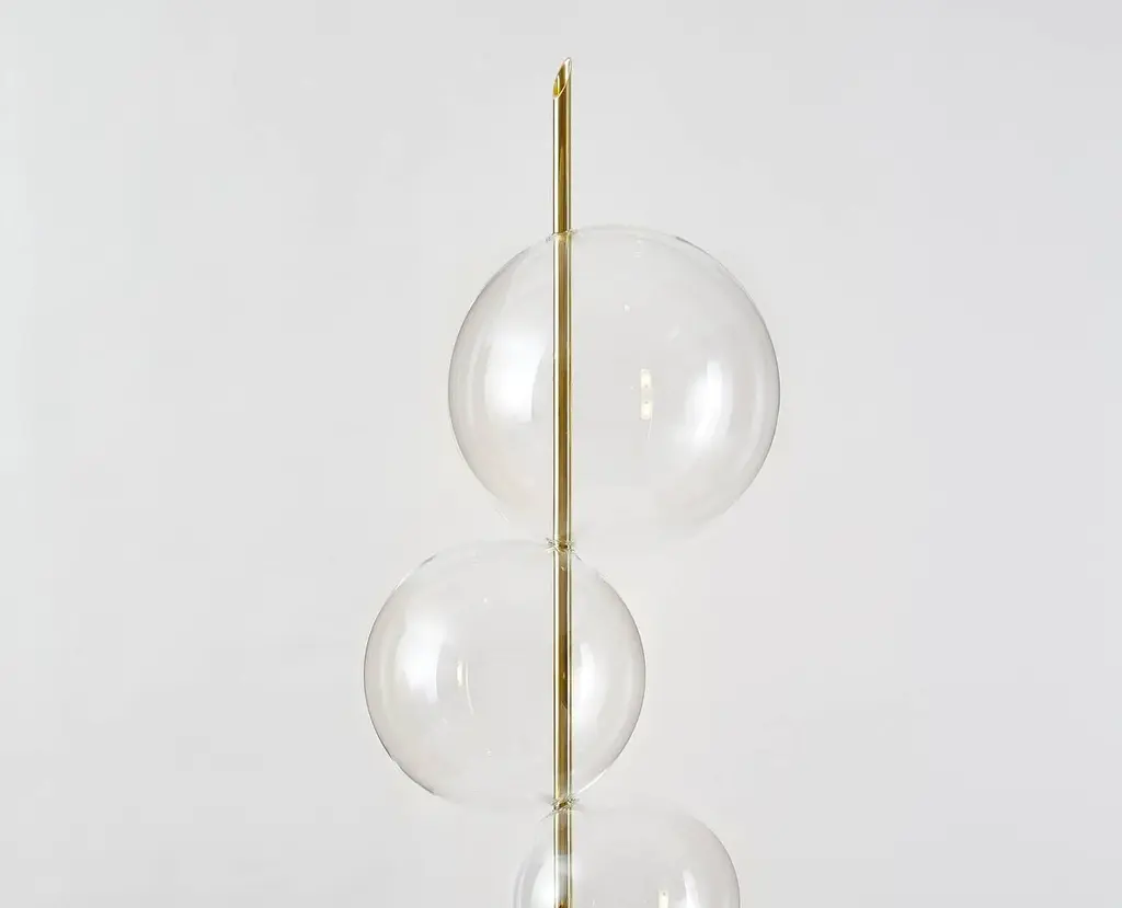 Inspired by pieces of Hail, Grandine Three Lights Mirrored Brass is a Minimal Contemporary Floor Light composed of three touching Handblown Glass Orbs, positioned to give the impression of balls of ice that have melted together to form one Solid, Transparent Piece.This lamp has one LED light source in each Glass Globe housed inside the rod. The base is Brass and contains the transformer. It is available in various finishes. Please refer to us for detailed photos of the finishesThe brass is unsealed and will patina gracefully over time.Lacquered finish available upon request.Dimensions: H 79” • 10” • 11”, H 200cm • 29cm • 25cm weight: 22lb • 10kgLed light type: proprietary 24vcc led • two x 3w • one x 5w • 2700k supply: 100-240v 50/60hzLight control: in line on-off switchMaterials: machined brass, handblown glassGrandine is finished and assembled by hand in our studio in Italy. Each piece is made to order and customizations are available.Dimmer along the cable available upon request.