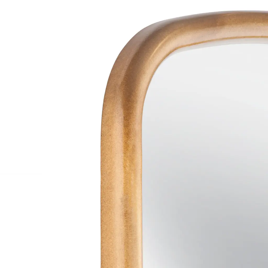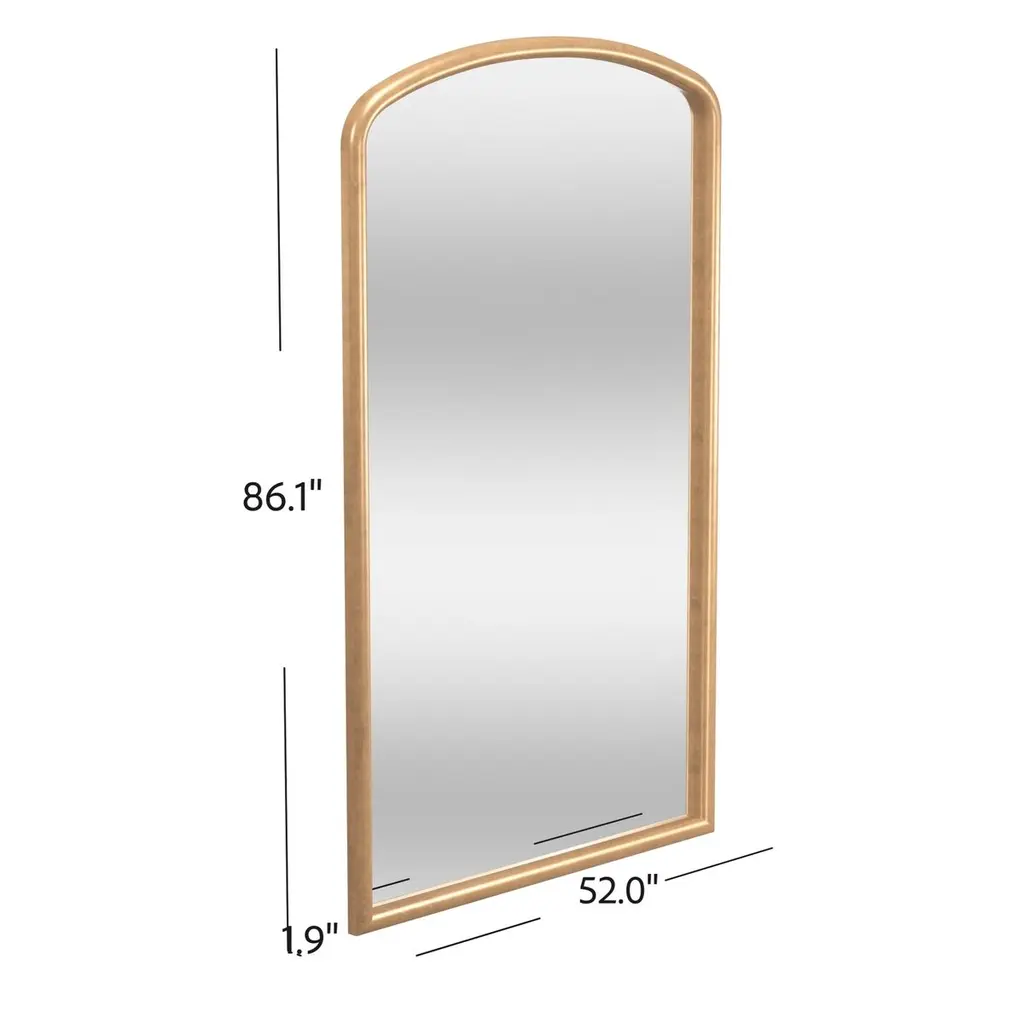 Elevate your space with the understated elegance of the Harrington Arched Leaner Floor Mirror. Inspired by classic European design, this tall floor mirror features a graceful curved top and a grounded rectangular base, offering a harmonious balance of form and proportion. The gilded bronze finish adds a soft metallic warmth, lending a refined touch to both traditional and modern interiors. Expertly crafted from premium resin and mirror glass, this piece makes a striking yet timeless statement—perfect for entryways, bedrooms, or living areas where a sense of light and luxury is desired.