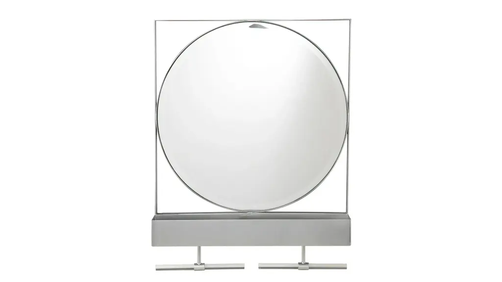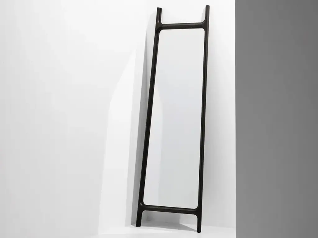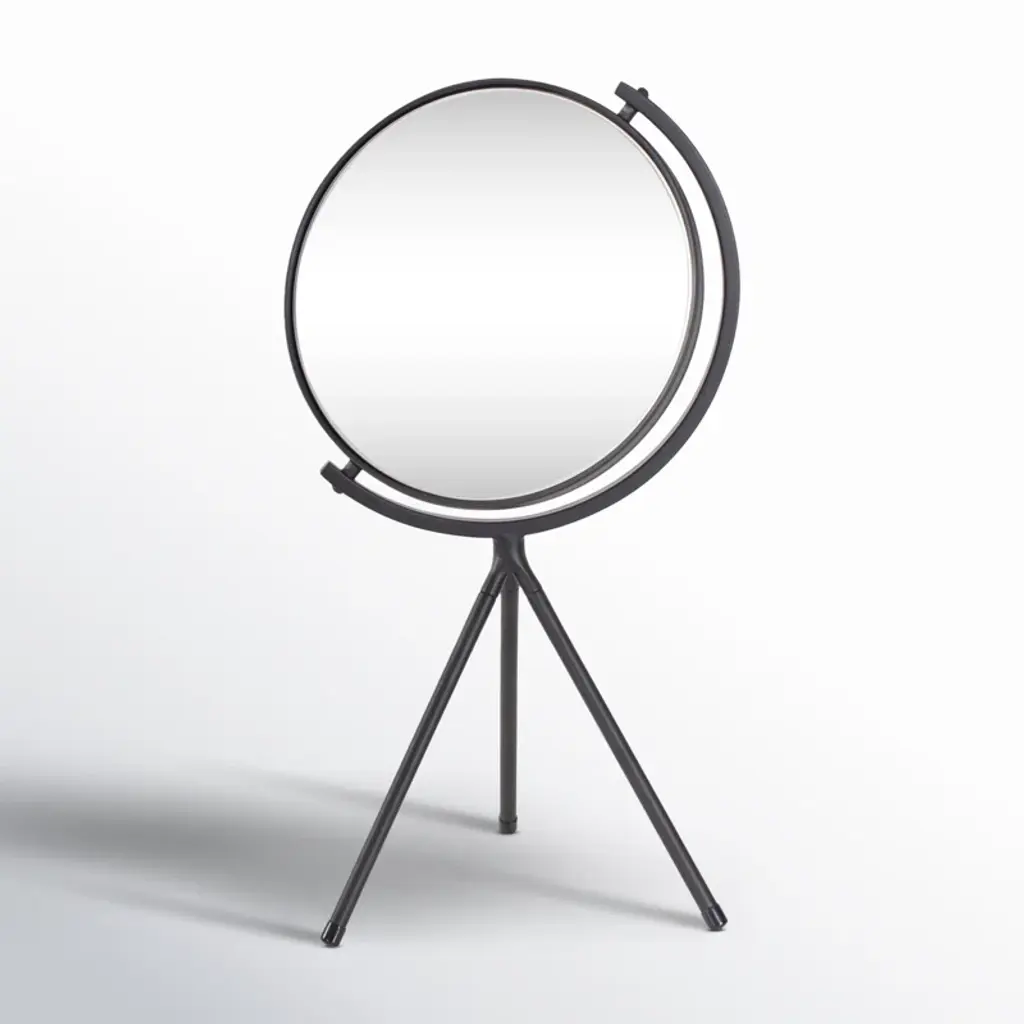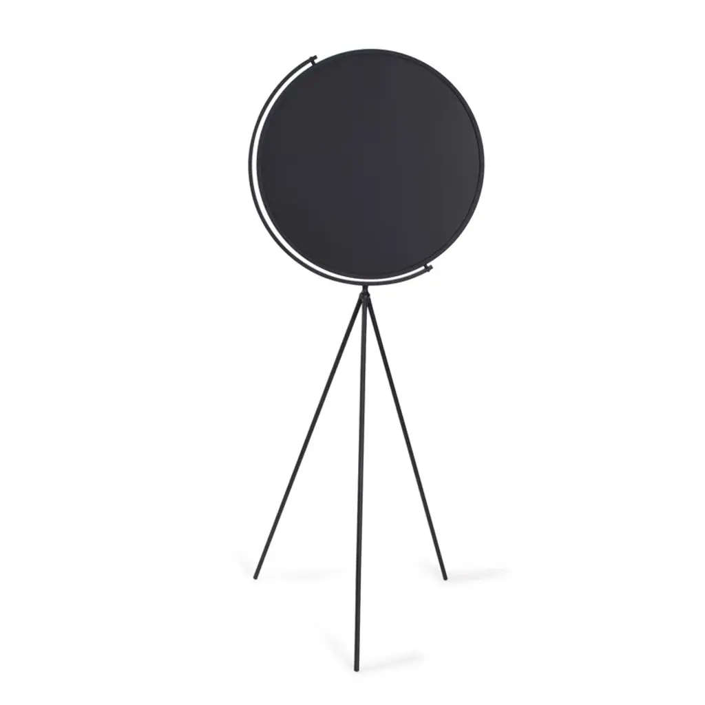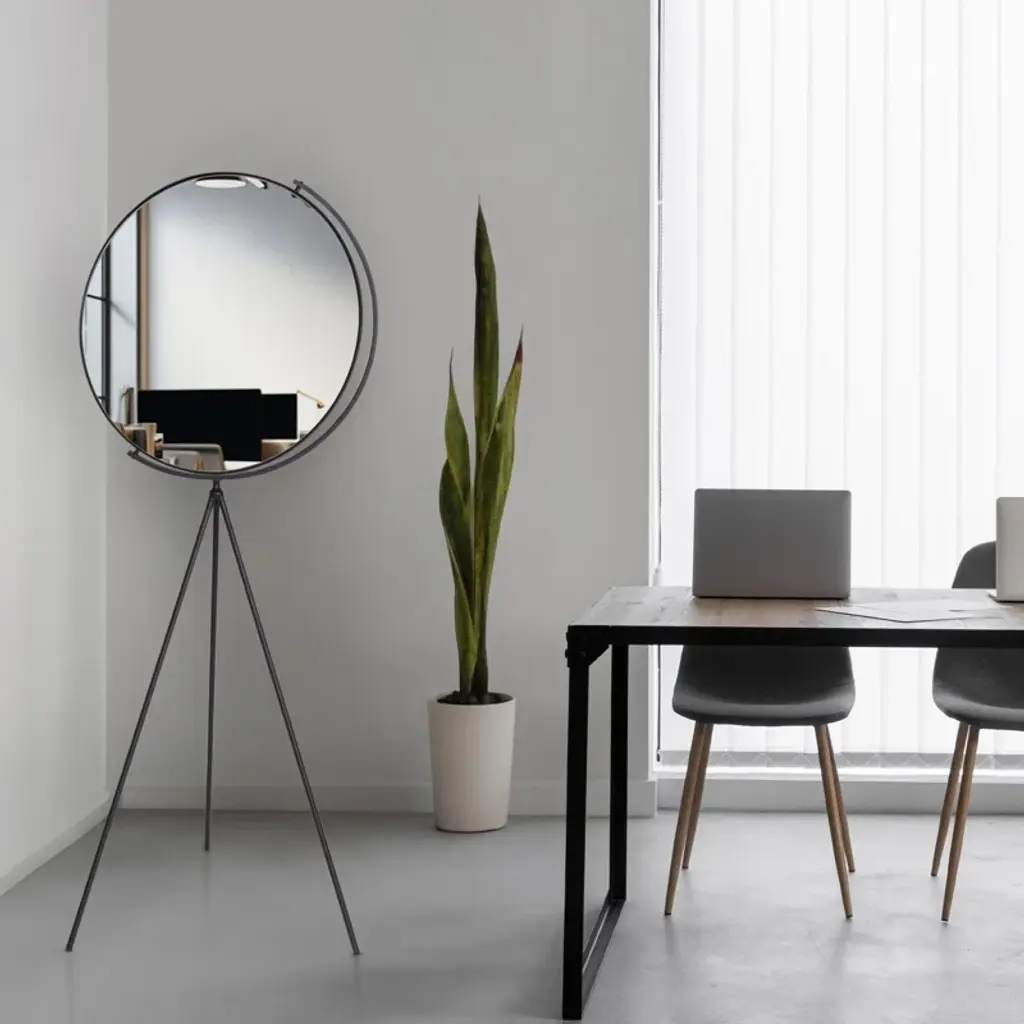 A sophisticated statement piece with its simple and sleek design, this floor mirror features black metal legs supporting a large round mirror face. This unique design adds versatility and intrigue to the mirror, making it both practical and stylish.
