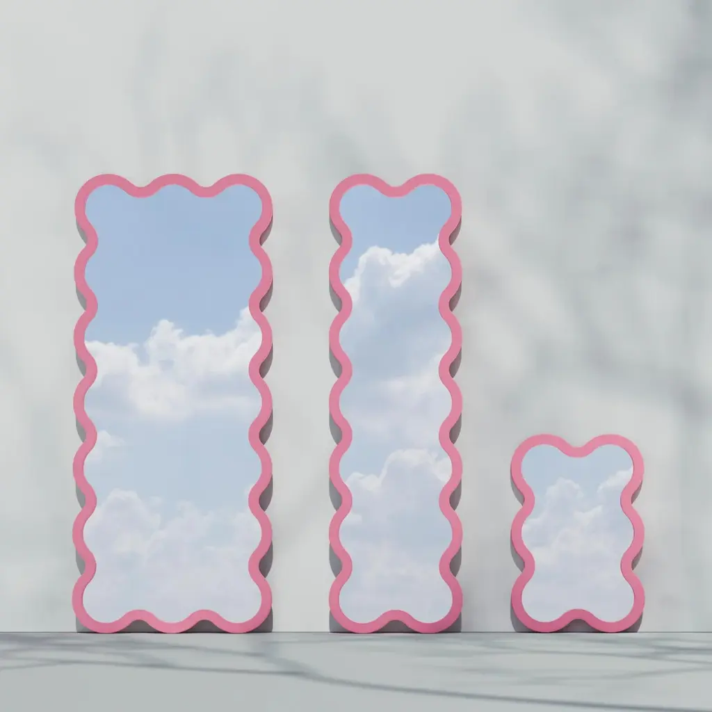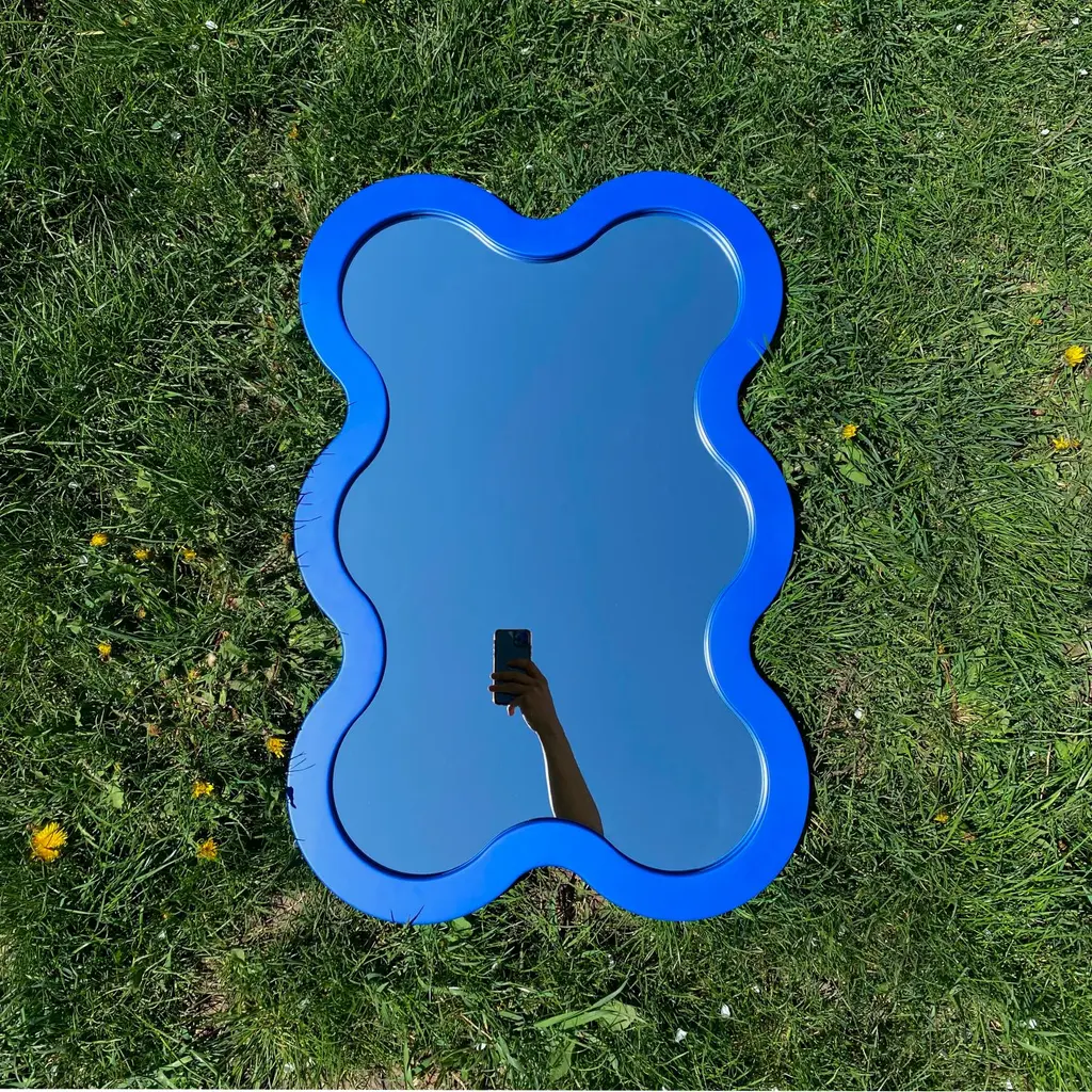 Hvyli 6 is best selling compact wavy wall mirror. With its distinctive, recognizable design, this mirror transforms any living room, bedroom, café, gallery, office, or workspace into a striking and stylish interior. Hvyli collection designed by Ukrainian industrial designer Ivan Voitovych, who has 10 years of experience working with brands around the world. oitoproducts mirrors combine unique design with exceptional manufacturing quality. The mirror is made of monolithic MDF on CNC equipment combined with handmade work by the best craftsmen. The frame of mirror is painted with eco-friendly paint in any color of your choice. (RAL / NCS palettes). Each mirror has special wall mounts included. Just, screw two hooks into the wall and hang your mirror. If you would like to place the mirror on the floor or tabletop leaning on the wall, please let us know and we will add special anti-slip rubber feet. All mirrors are delivered in special reinforced packaging.