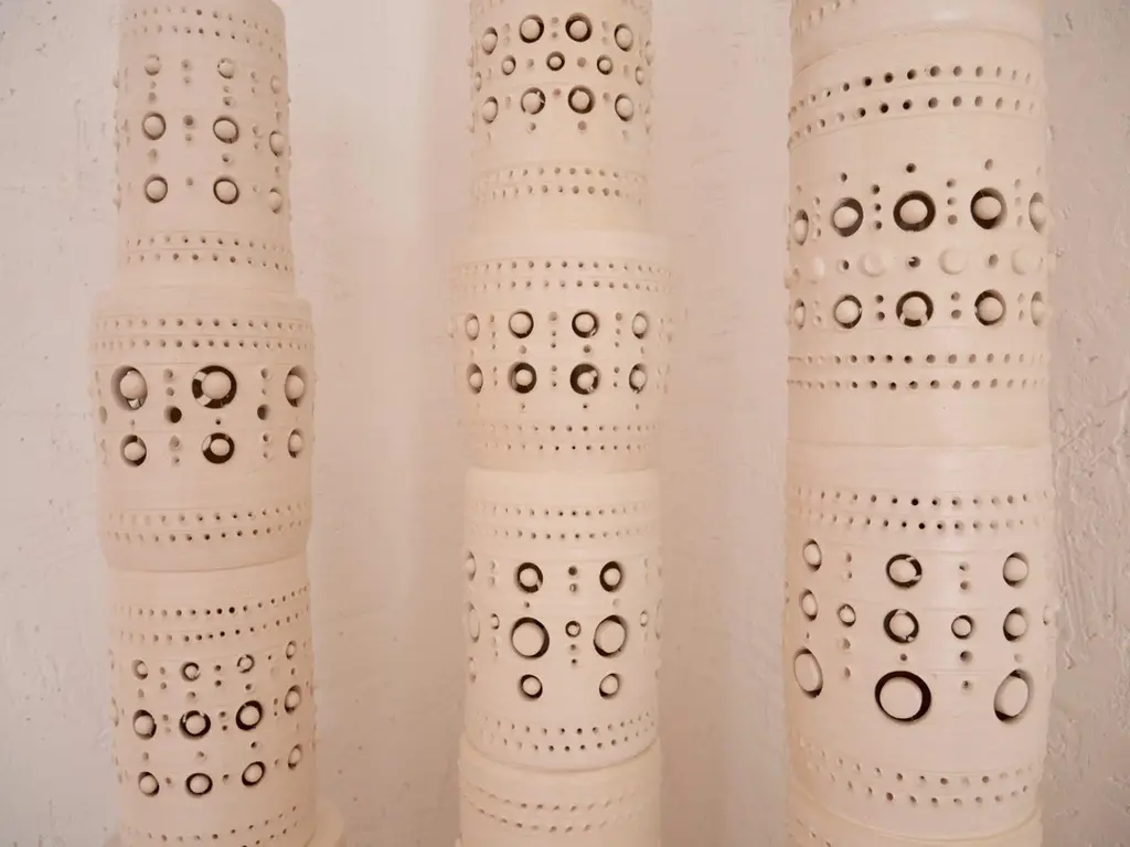 Iconic Georges Pelletier Set Of 3 Totem Floor Lamps In Enameled Ceramic