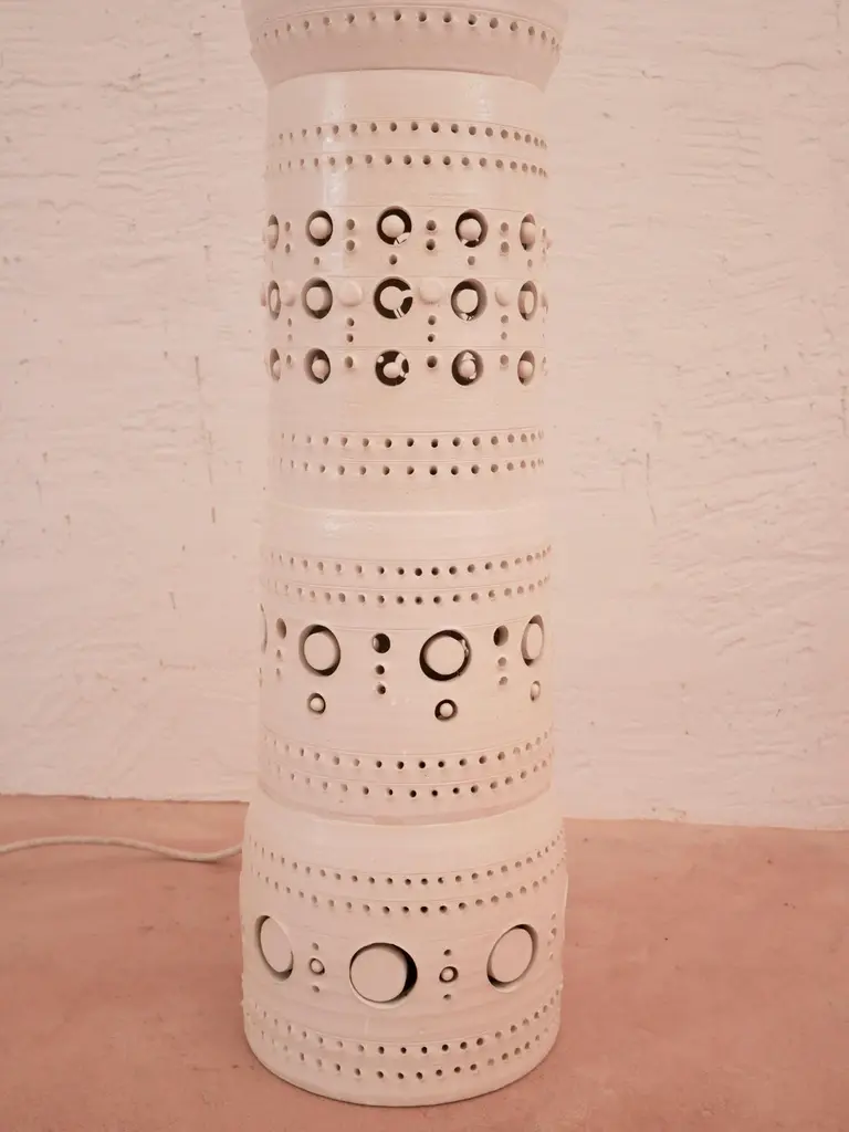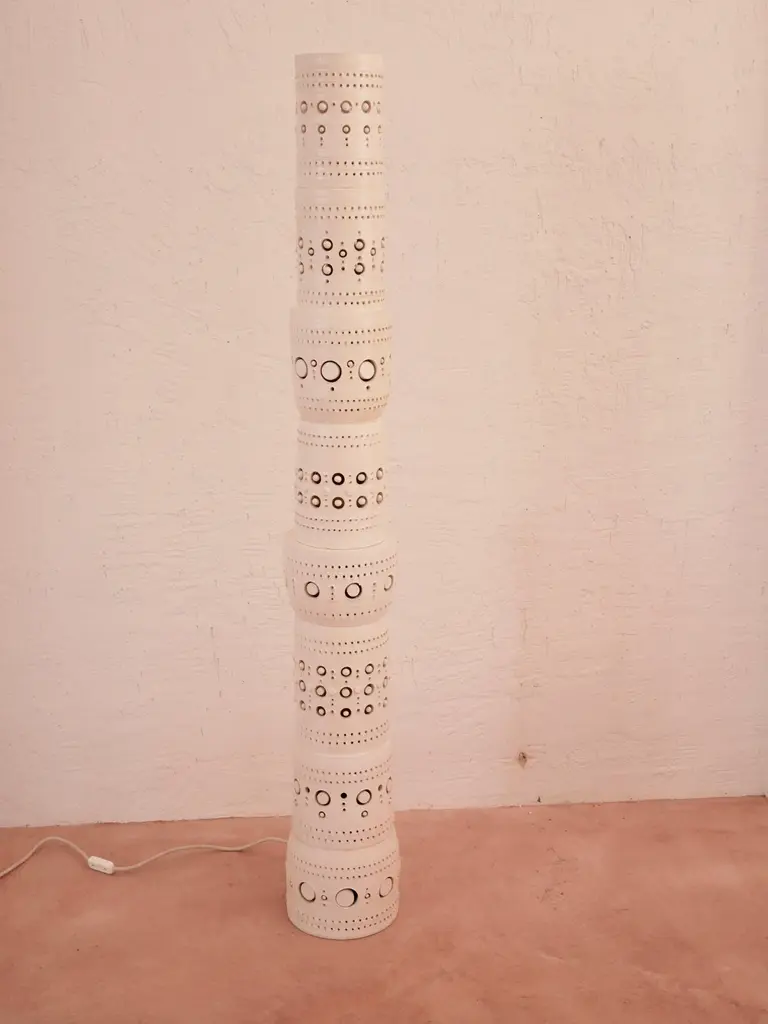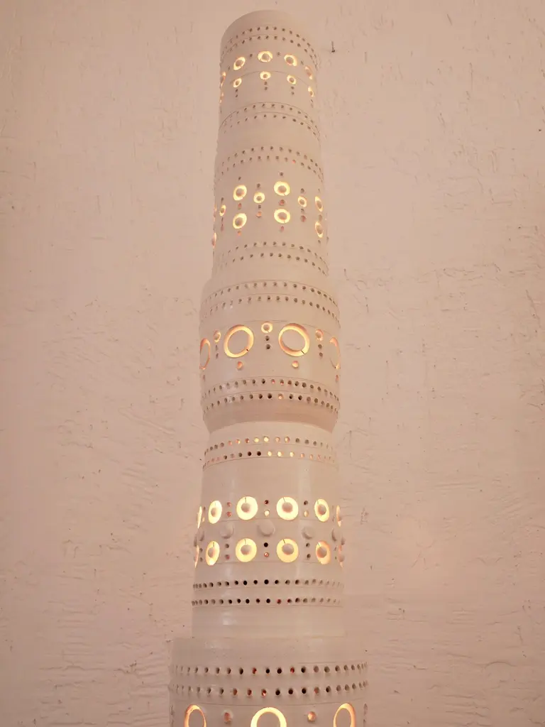 Iconic Georges Pelletier Totem Floor Lamp In White Enameled Ceramic