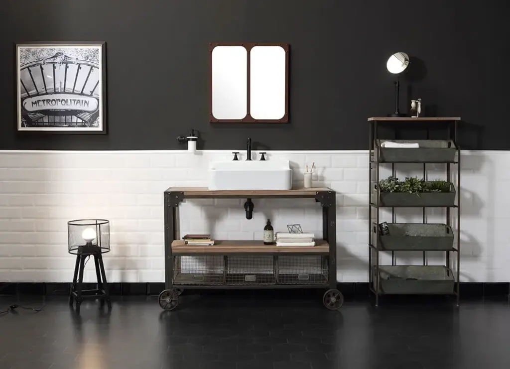 The retro style Bleu Provence tilting mirrors for bathrooms are made in brass of the highest quality. Large choice of metal finishing (chrome, nickel, copper, gold, bronze,…) matt or glossy. Small and large sizes with or without frame.Collection of washbasins and sanitary ware in a pure industrial style. Many choices of sinks (countertop or on a metal stand with a reel eiffel tower look). The Industrialis series exists with many different faucets and with several mirrors and accessories all in industrial style. Many finishes available for metal parts as well as wooden and metal furniture for additional storage. Floor mounted toilets and bidets and wall hung wc also available.