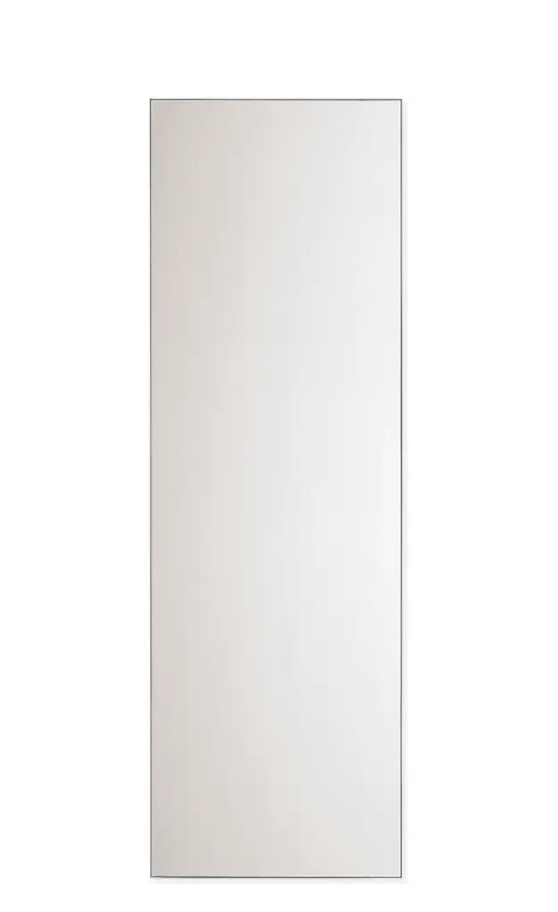 Sleek and modern, the Infinity floor mirror has a thin box frame handcrafted from steel and inset with beveled-edge glass to complete the look. Choose the size you need and your favorite steel finish. Safety hardware included.