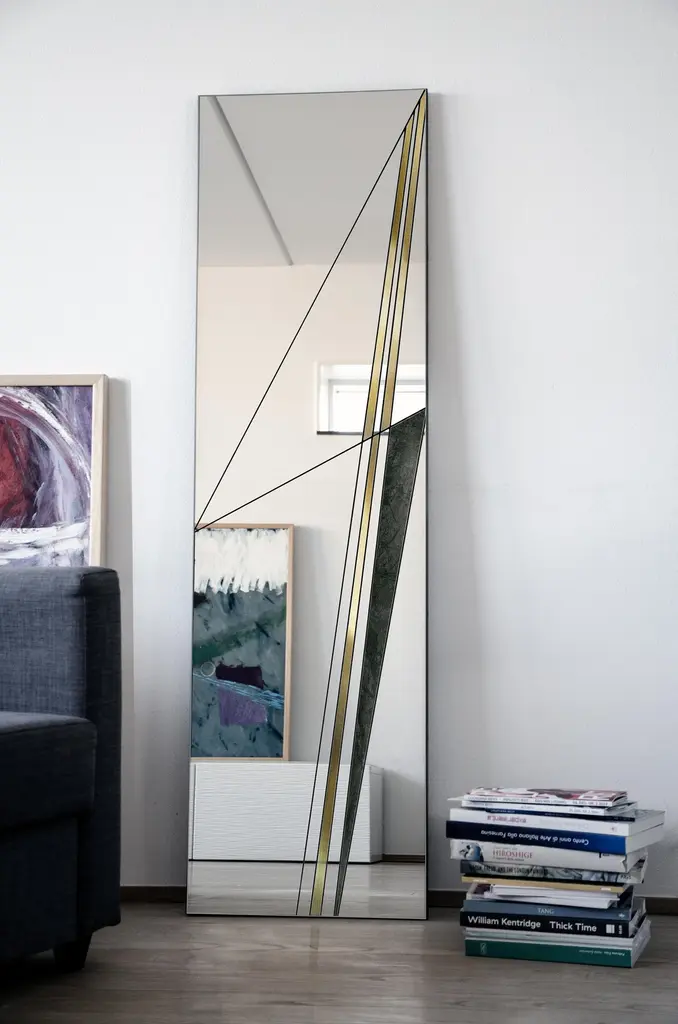 Itinera Via IV Standing Mirror by Atlas ProjectDimensions: D 3 x W 55 x H 170 cm. Materials: Black powder painted Iron, mirror, brushed brass, Green Guatemala marble, and wood.Our ProjectThe synergy between a thirty-year Italian craft experience and an original design, based on the need to research and develop topics up with the new aesthetic trends, gives birth to Atlasproject, an exclusive furniture collection conceived by the designer Massimiliano Giordano.Born and developed first in Copenhagen, then in Vienna and finally in Rome, the project is – as a matter of fact - a journey of contamination and encounter between the many cultures of the European Design.The production is focused on a dynamic dialogue between geometries and materials, which leads to collections of deep impact and elegance. Every piece merges essential geometric shapes with the most surprising materials, textures, and colors, as the result of a careful selection of natural materials and hand-processed metals.The Atlasproject collections are entirely made in Italy, where the tradition of artisanality is still a deep value, to ensure high-quality and long-life products.Of Neapolitan origins, Massimiliano Giordano grew up inthe family’s artistic atelier.The artisan knowledge and the design skills lead him to Atlasproject, a creative container inspired by the journey, leit motiv of his personal and professional life. In fact, the designer leaves from Naples towards Copenhagen, where he will stay for five years, and then for Vienna for five years more in the heart of the Mitteleuropean design, and finally in Rome, where he currently lives and works.The amazing connections between the encountered design souls actually represent the most significant stylistic figure of his works.
