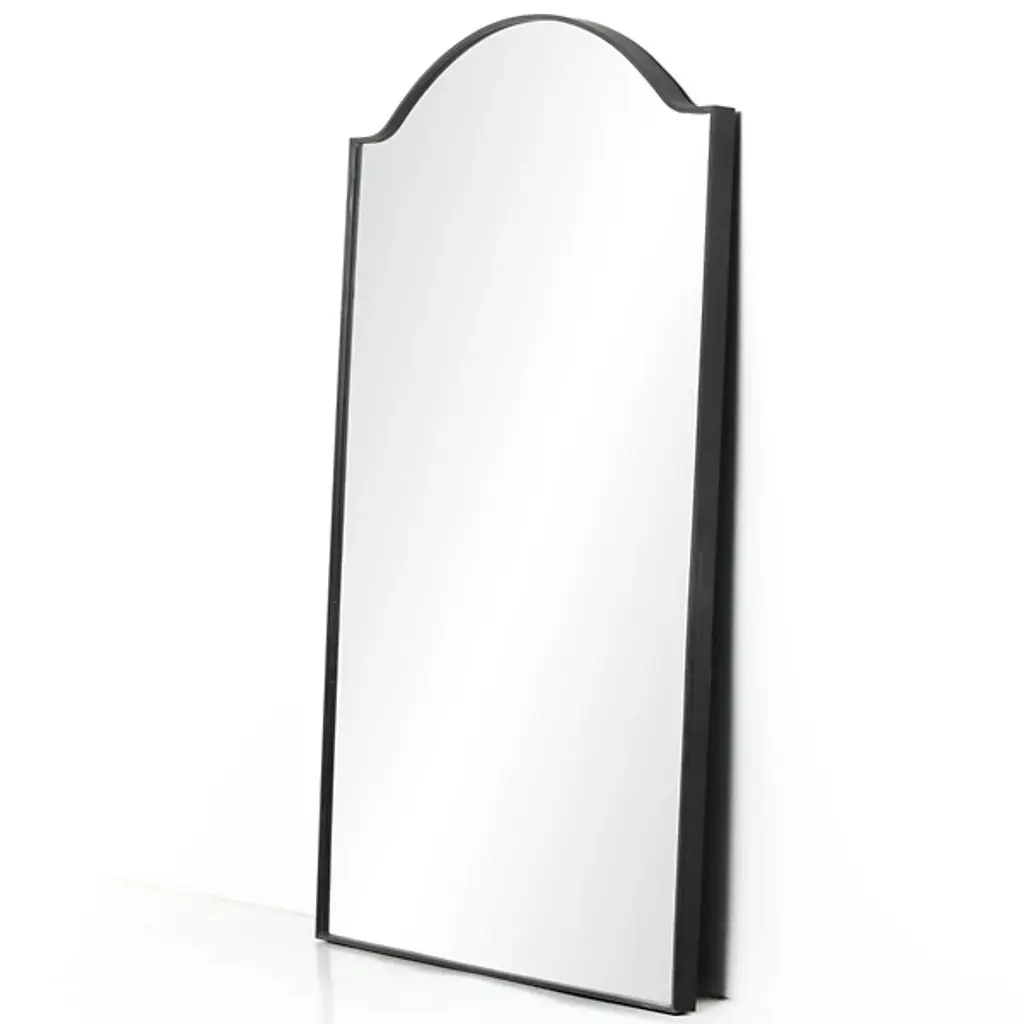 The Jacques Floor Mirror from Four Hands blends transitional and contemporary design elements. It has sharp corners and a lovely arc at the top for visual intrigue. The mirror is complemented by sturdy iron and engineered hardwood, showcasing fine craftsmanship. It clearly presents reflections so you can take in your surroundings. Known for its size, this fixture can be leaned against a wall and placed on hard-surface floors for convenience.