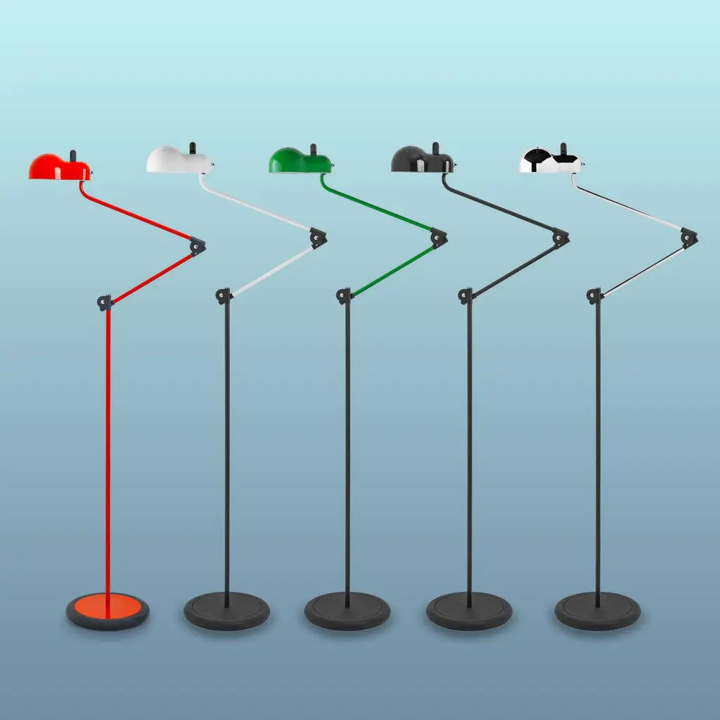 Joe Colombo 'Topo' Articulating Floor Lamp for Stilnovo in Green.Founded in 1946 in Milan, Stilnovo was one of the most innovative lighting companies in Italy during the Midcentury era, producing iconic pieces by such luminaries as Joe Colombo, Angelo Mangiarotti, Ettore Sottsass, Gaetano Scolari, Piero Castiglioni, Bruno Gatta and others. Stilnovo was relaunched in 2019 with a commitment to faithfully re-editioning its legendary designs with uncompromising attention to detail, materials and craftsmanship.The 'Topo' floor lamp, originally designed by Joe Columbo in 1970, has long been recognized as an iconic and timeless design. The reflector's shape mirrors that of a standard light bulb while sitting atop an adjustable arm. Reminiscent of the vents on a 1960's sports car, five slots were created atop the reflector to dissipate heat from original incandescent bulbs while preventing direct glare. A black handle permits the user to adjust the reflector to a variety of angles making this light ideal for any task, as does the jointed arm. A staple of Italian lighting design, this version is meticulously executed to Stilnovo's exacting standards in powder-coated metal.Price per item. Available to order in unlimited quantities in choice of green, white, black, red or chrome. Also available as a table lamp in a separate listing. This listing is for the Topo floor lamp in green.Accommodates 1x 7W max standard medium base (e26) LED bulb (not included). Dimmable. Ships with 8.1' black cable. IP20 rated. UL listed.In stock lead time 6-8 weeks. Out of stock can add an additional 8 weeks or more. Please note that lead times and inventory availability are subject to change without notice. For time sensitive orders, please contact us for current lead times prior to purchasing.Made to order. All sales are final.